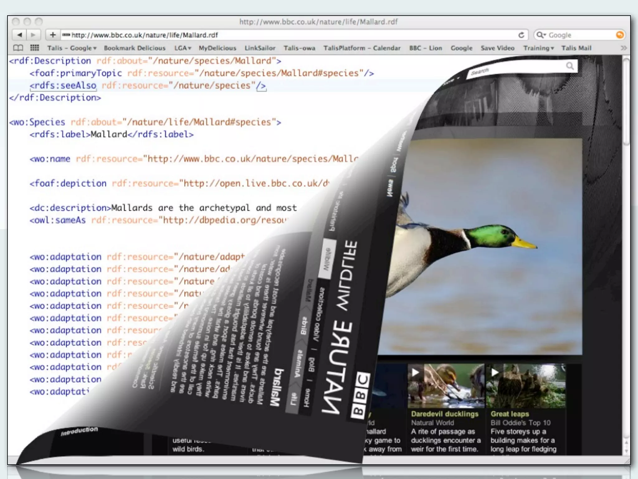 The document discusses the core concepts of the web and semantic web. It explains how linked data uses semantic web standards to identify things with URIs and describe them using attributes. An example is given describing a spacecraft using its URI and attributes like name, mass, launch date, site, and coordinates. Links connect related concepts like the spacecraft and its launch.