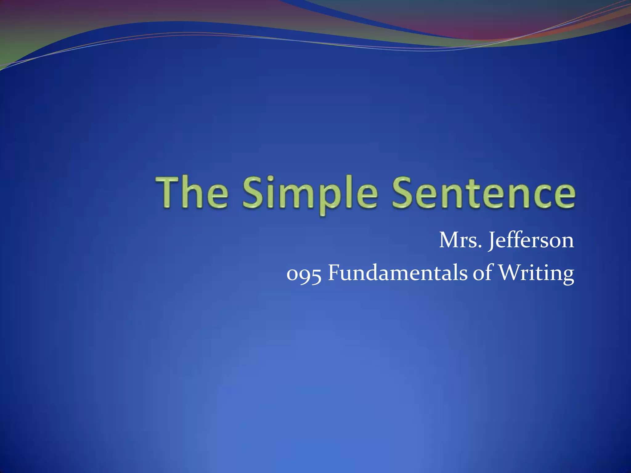 This document discusses the key components of a simple sentence, including subjects, verbs, and prepositional phrases. It defines subjects as answering "who or what is doing the action" and verbs as showing action or being. Helping verbs are described as verbs that come before the main verb. Prepositions are defined as small words that indicate position or possession, and prepositional phrases consist of a preposition and its object but are never the subject of a sentence. The document encourages practicing identifying these elements in sentences through an online activity.