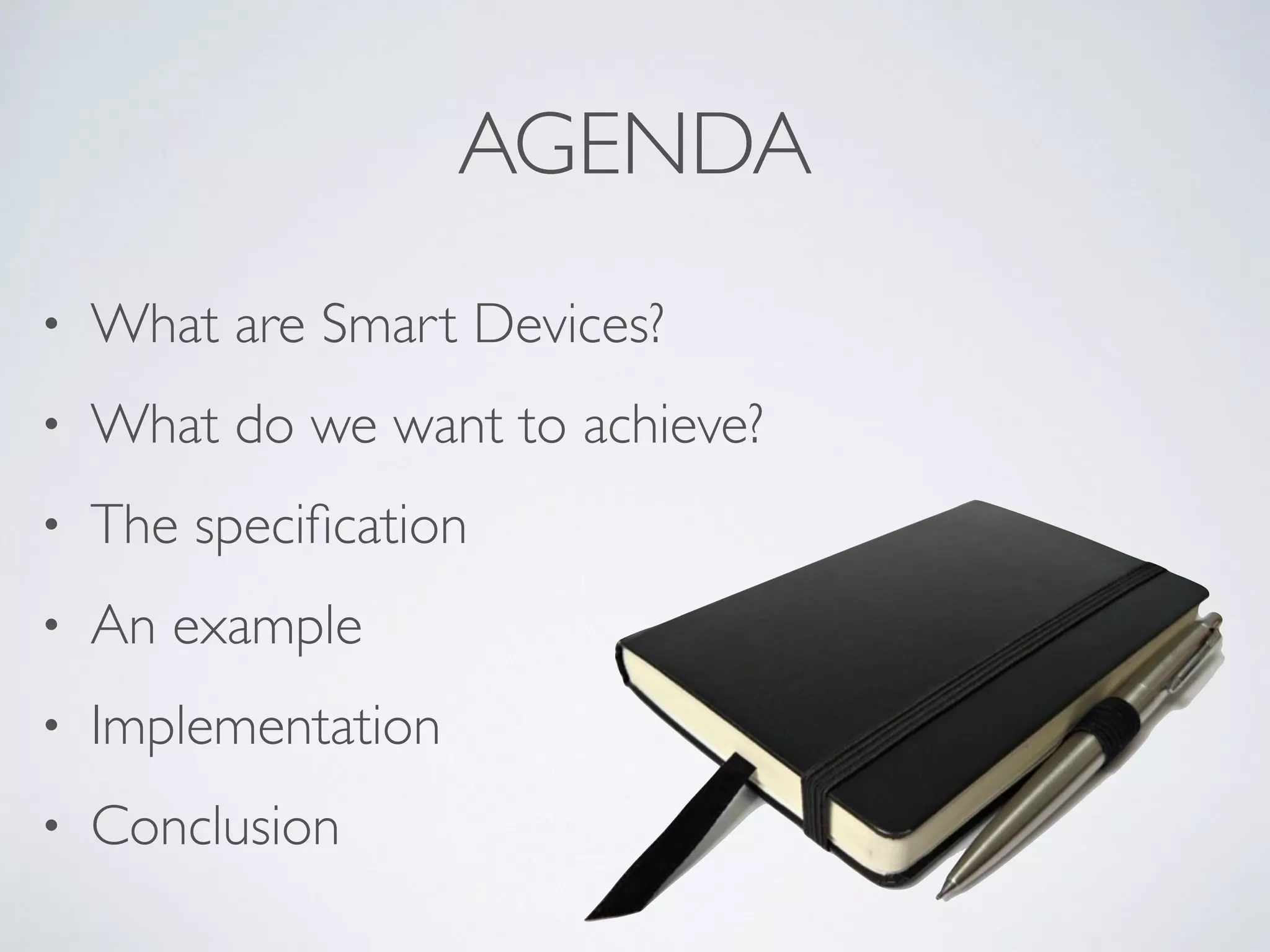 The document presents a specification for smart devices in remote labs to allow various clients to interact with lab equipment in a standardized way. An example interaction is given where a client discovers the sensors and actuators of a smart device, receives sensor data, and sends actuator commands. The specification aims to make smart devices more interoperable and reusable by different client applications through a common interface and metadata description.