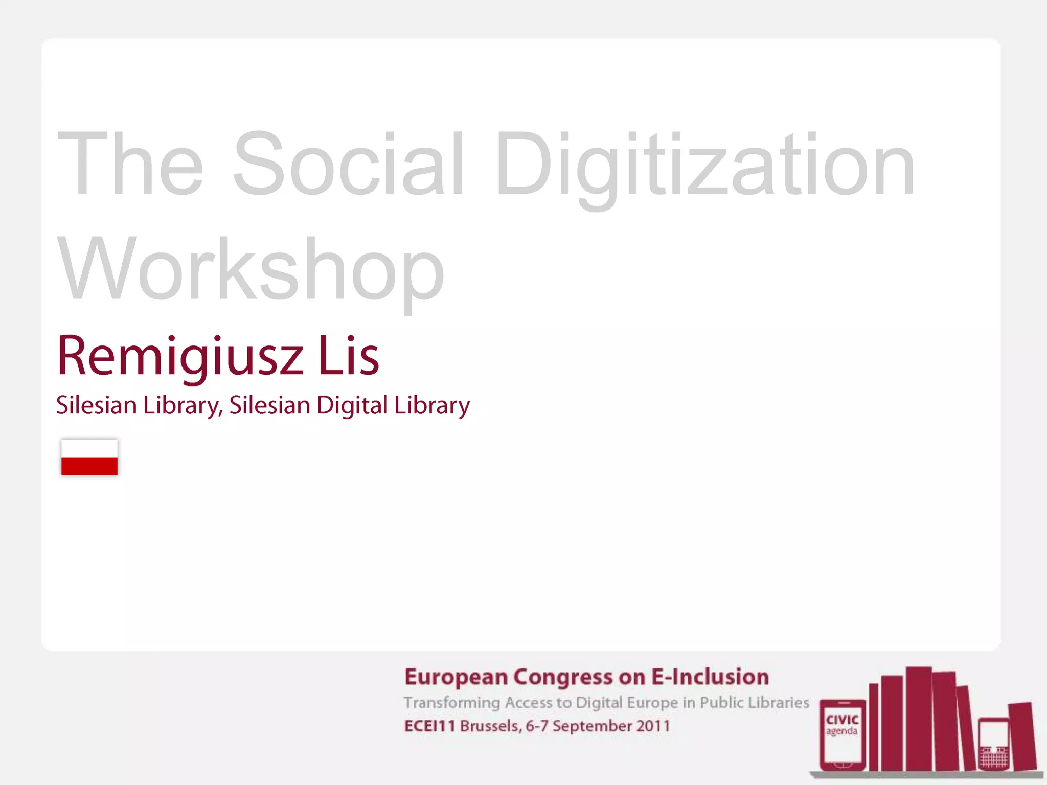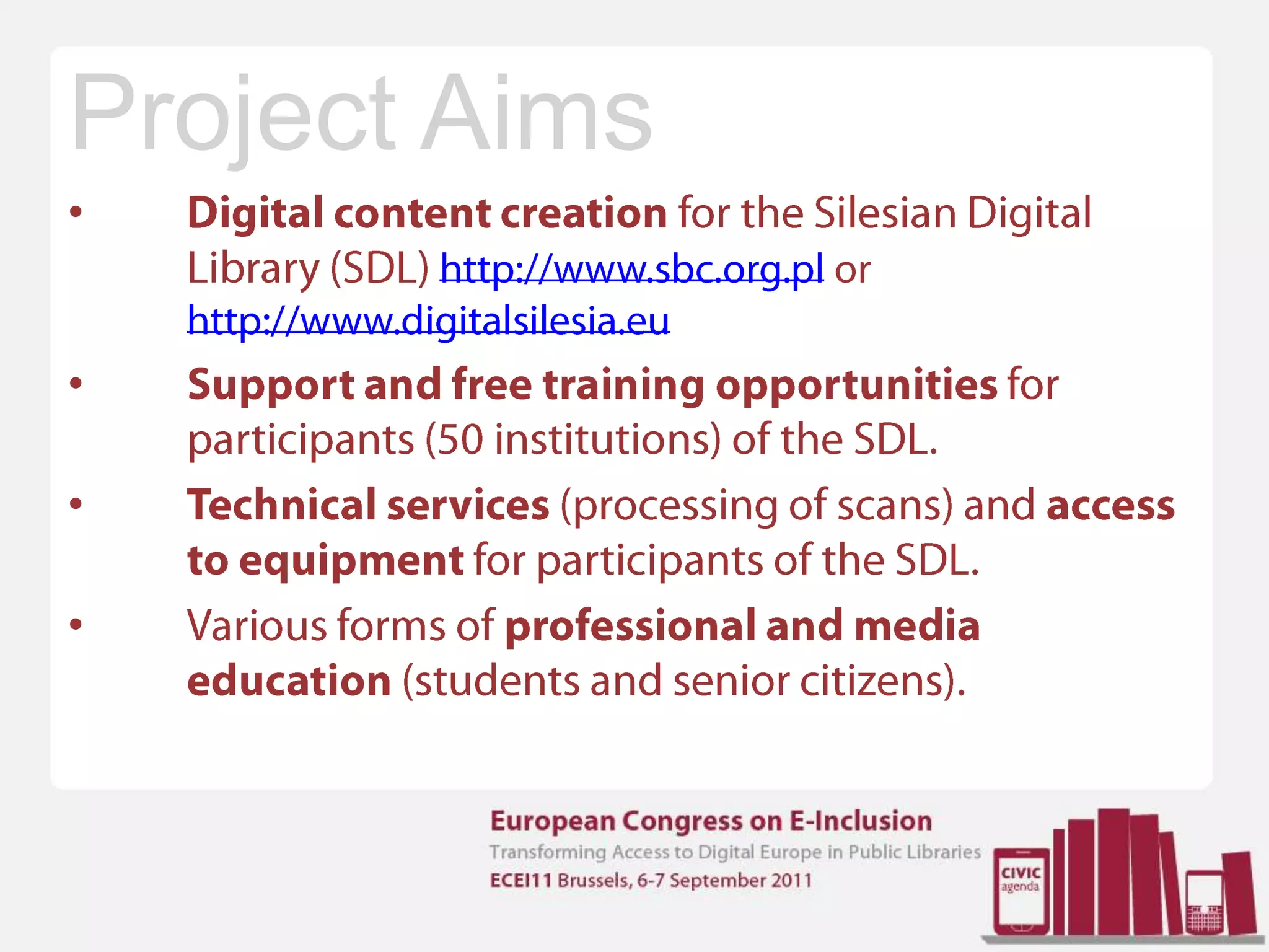 The Social Digitization Workshop aimed to create digital content for the Silesian Digital Library by providing training, technical services, and equipment access to 50 participating institutions. Key beneficiaries included the global population who would have access to new digital content through Europeana, participants who gained practical skills, students who received internships, and senior citizens engaged in life-long learning activities. Outcomes included over 500,000 digital scans added to the library and Europeana, training 56 staff members from 26 institutions, technical support and scans for 8 institutions, and professional experience for 39 student interns.