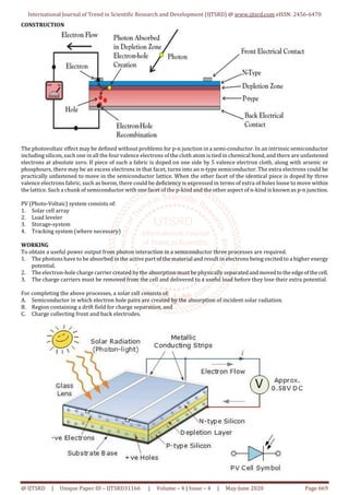 The document discusses a revolutionary design for solar cells called the 'spinning solar cell,' which claims to generate 20 times more power than traditional flat solar panels by using a conical shape that optimally captures sunlight. This design incorporates a conical lens concentrator and self-cooling features to maintain efficiency even at high temperatures, making it suitable for various applications including commercial, domestic, and educational settings. The technology aims to provide renewable energy at a lower cost and with reduced land requirements compared to conventional solar applications.