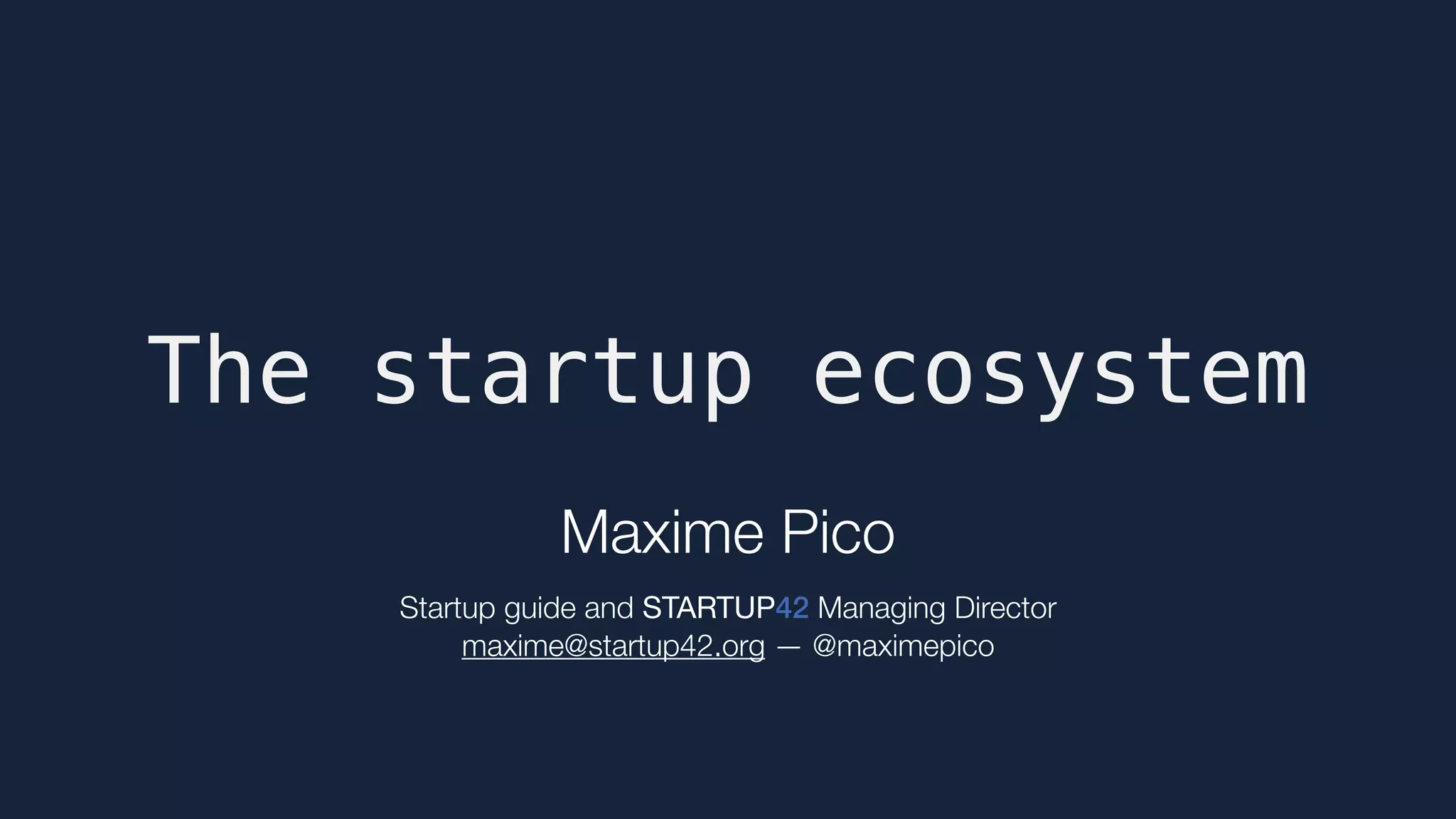 The document outlines key concepts and insights on the startup ecosystem, highlighting the importance of technology and innovation in shaping new business models. It discusses definitions of startups, funding options such as venture capital and crowdfunding, and the role of incubators and accelerators in supporting entrepreneurs. Additionally, it emphasizes the challenges faced by startups and the criteria for success, including predictable growth and meeting market needs.