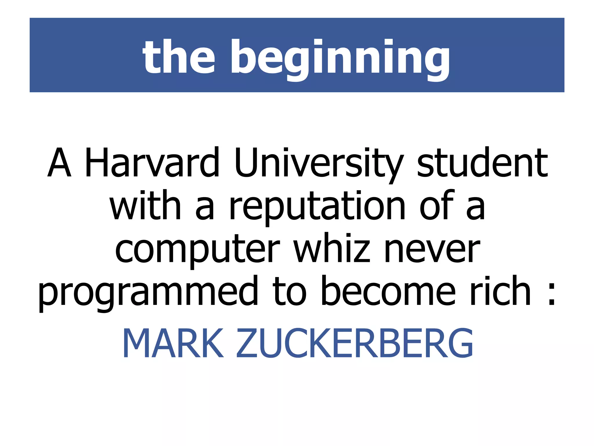 Mark Zuckerberg created Facebook as an online social network for Harvard students called Thefacebook.com in 2004. It quickly spread to other universities and grew to hundreds of thousands of users. Zuckerberg hired employees and received funding to turn it into a company called Facebook. Over the next few years, Facebook added more features, saw rapid user growth into the tens and then hundreds of millions, and became a worldwide popular social media platform.