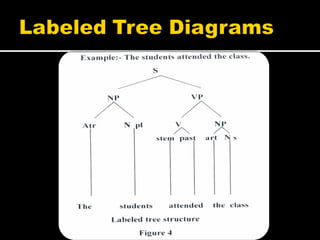 Noam Chomsky introduced the concept of generative grammar in the 1950s, which explores the relationship between surface structure and deep structure in language. The document discusses syntactic theories and transformation rules, illustrating how different sentence structures maintain the same underlying meaning. Additionally, it outlines various syntactic symbols and their meanings, emphasizing the mathematical nature of syntactic analysis.