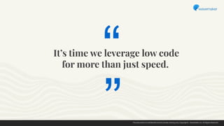 The document discusses the advantages of low-code application development, emphasizing speed, scalability, and integration for both citizen and professional developers. It highlights best practices for building resilient applications through effective architecture, security, and user-centric design, as well as the importance of avoiding vendor lock-in and leveraging existing technologies. Additionally, it stresses the need for proactive measures to ensure scalability and manage costs effectively.