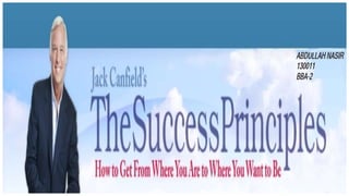The document outlines key principles for success from the book "The Success Principles" by Jack Canfield. It discusses 10 principles across different sections, including taking 100% responsibility for your life, being clear on your purpose, asking others for advice, using feedback to improve, and taking action now. The document concludes by emphasizing taking full responsibility for your life and changing your actions if you are not getting desired results.