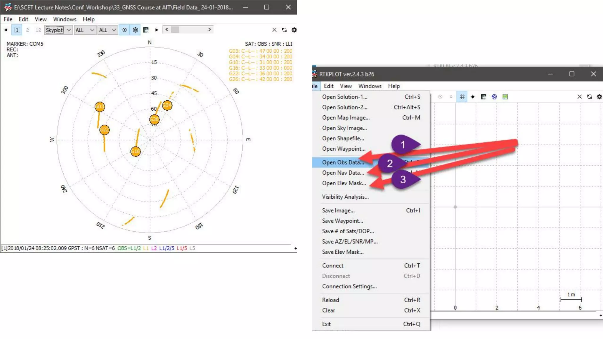The document lists the names and countries of five individuals on a team called "THE SUN". It also includes two short statements indicating that the individuals are learning and that this is someone's first ever positioning data plot from January 24, 2018 at 4:30pm.