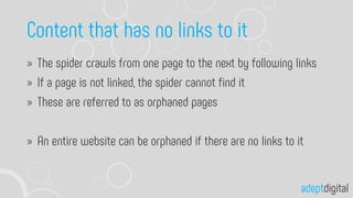 The document discusses technology accessibility, focusing on website and page creation, content discovery, and indexing. It highlights Google's capability to index certain content while excluding others. The information also references specific sites for further exploration.