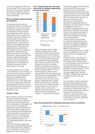 The document discusses the role of personal statements in the UK university admissions process, highlighting disparities in support and quality based on applicants' educational backgrounds. Research indicates that state-educated students tend to produce lower-quality personal statements due to less guidance, disadvantaging them in admissions. Programs like the academic apprenticeship show promise in leveling the playing field by providing structured support for personal statement development, but the need for better teacher training and transparency from universities remains crucial.