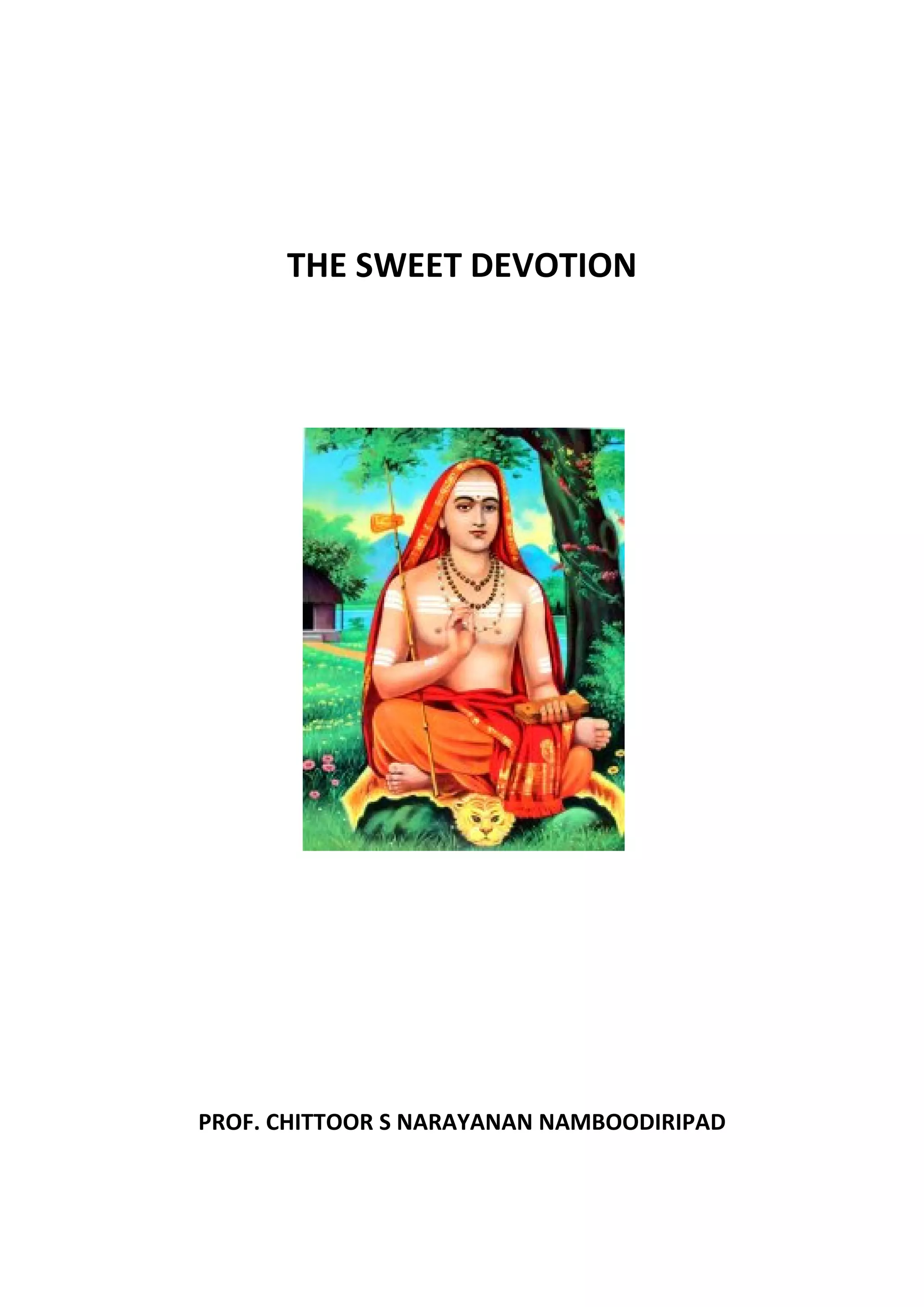 This document discusses Adi Sankara and the path of renunciation and devotion to achieve self-realization according to Advaita Vedanta philosophy. It contrasts true liberation of the soul with merely intellectual understanding. It explains that renunciation requires positive determination to reach the goal of liberation, not escapism or laziness. Devotion through Bhakti Yoga is described as spiritual culture that can help prepare one for the path of knowledge or Jnana Yoga. The document shares stories of Adi Sankara and other enlightened souls who demonstrated true characteristics of an Advaitin through supernatural feats.