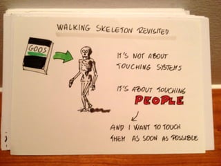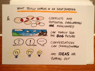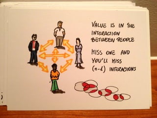 The document discusses the importance of collaborative requirement gathering through event storming, a method that brings key stakeholders together in an unlimited modeling space to explore and model business processes collectively. It emphasizes the need for active participation, cross-functional communication, and creating a shared understanding of complex systems and pain points. The author promotes event storming as a valuable tool for organizational learning, experimentation, and addressing business challenges effectively.