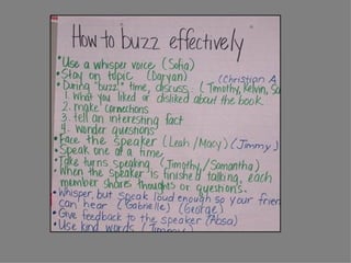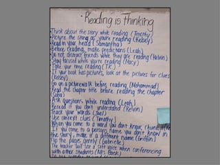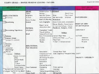The document discusses effective instructional frameworks for teaching reading and developing competent readers through various strategies including teaching routines, guided mini-lessons, and sharing practices. It emphasizes the importance of creating a structured environment that fosters engagement and self-evaluation while addressing diverse reading genres. The framework aims to establish lifelong learning habits and encourages teachers to adapt their instruction according to student needs and genre differences.