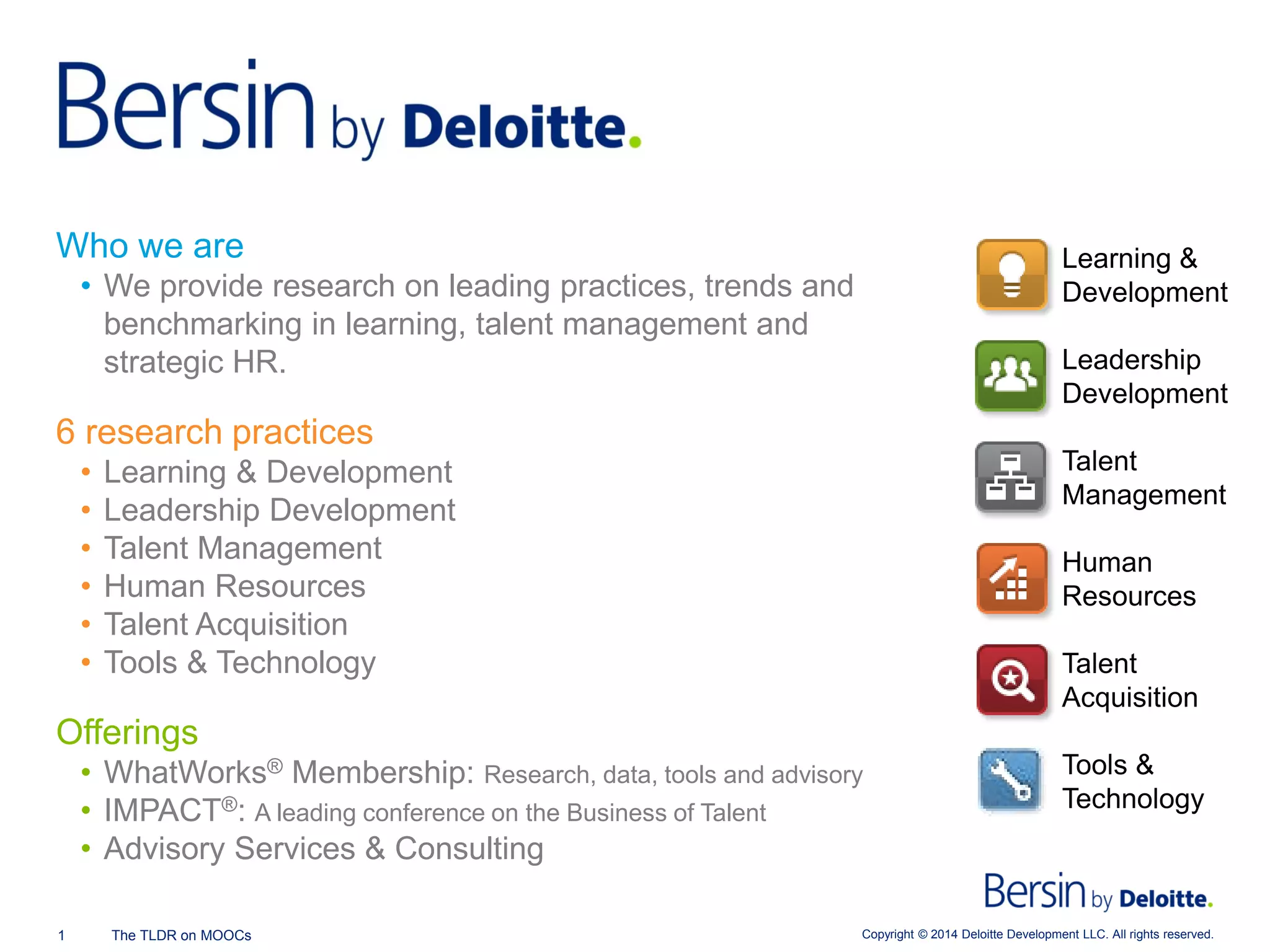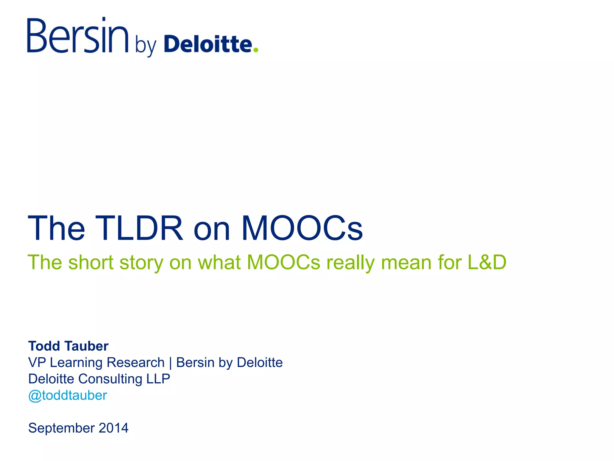 The document discusses the impact and evolving role of Massive Open Online Courses (MOOCs) in corporate learning and development (L&D). It highlights that while many organizations are interested in leveraging MOOCs for various educational purposes, there are significant challenges and barriers to their adoption. The document emphasizes the need for organizations to be cautious and strategic in their implementation of MOOCs, suggesting a gradual approach to integrating these learning solutions.