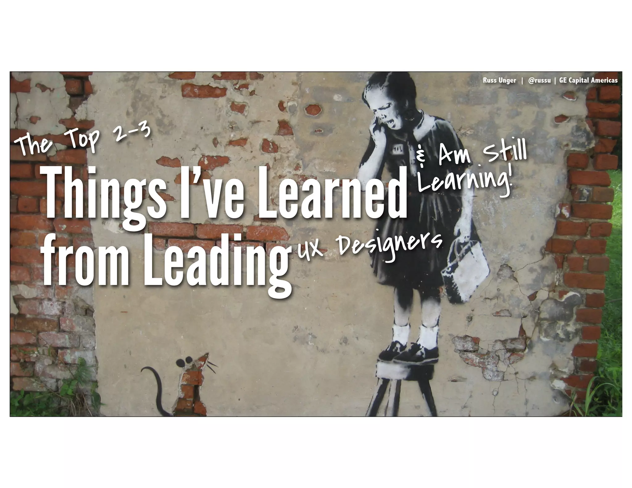 Russ Unger shares insights from his experiences in leadership within UX design, emphasizing that many managers and teams are essentially 'winging it' while learning and adapting. He highlights the importance of a team charter to establish purpose, commitment, areas of focus, and growth within the UX team, along with the value of critique in building a collaborative culture. The document also underscores non-technical skills, such as facilitation, collaboration, and time management, as critical elements for effective leadership.