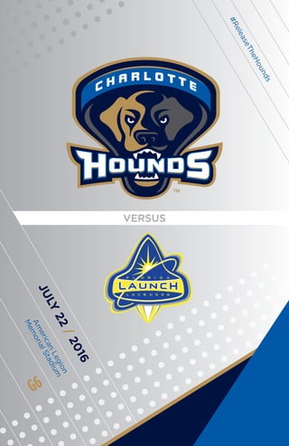 The document provides a roster for the Charlotte Hounds lacrosse team, including player names, positions, heights, weights, and colleges attended. The document highlights the coaching staff and medical personnel associated with the team, along with a promotional message about the team and its sponsors. Additionally, it includes contact information for the sponsor, NFP, and mentions their commitment to the Charlotte community.