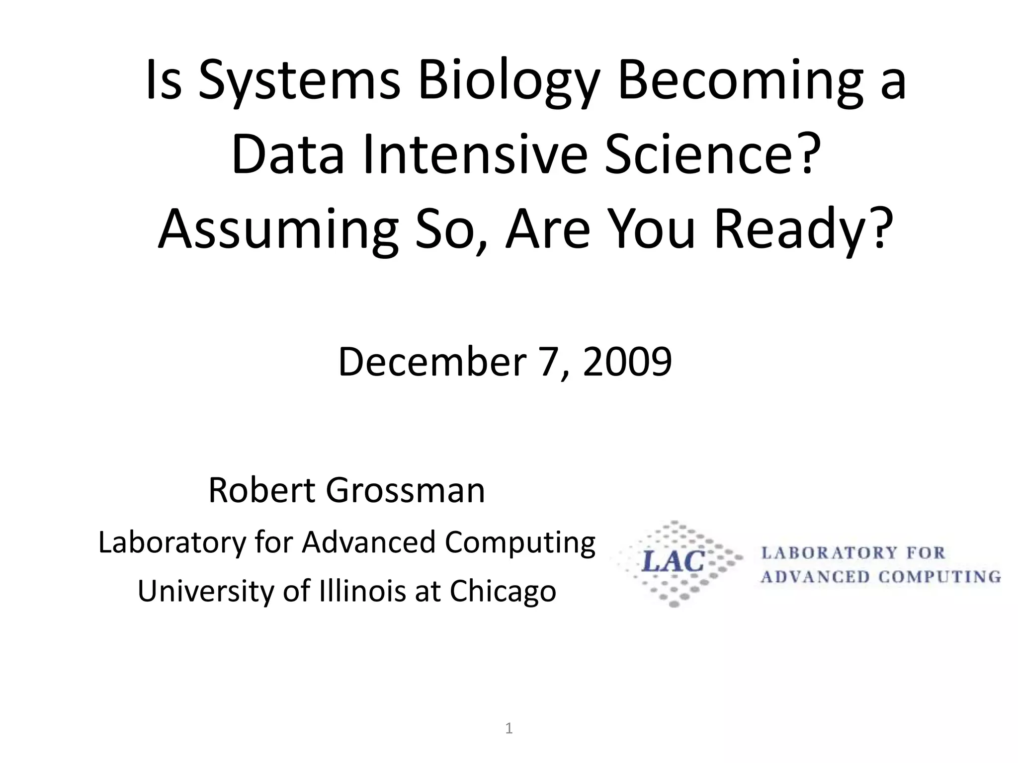 Systems biology is becoming a data-intensive science due to the exponential growth of genomic and biological data. Large projects now produce petabytes of data that require new computational infrastructure to store, manage, and analyze. Cloud computing provides elastic resources that can scale to support the increasing data needs of systems biology. Case studies show how clouds are used for large-scale data integration and analysis, running combinatorial analysis over genomic marks, and enabling reanalysis of biological data through elastic virtual machines. The Open Cloud Consortium is working to provide open cloud resources for biological and biomedical research through testbeds and proposed bioclouds.