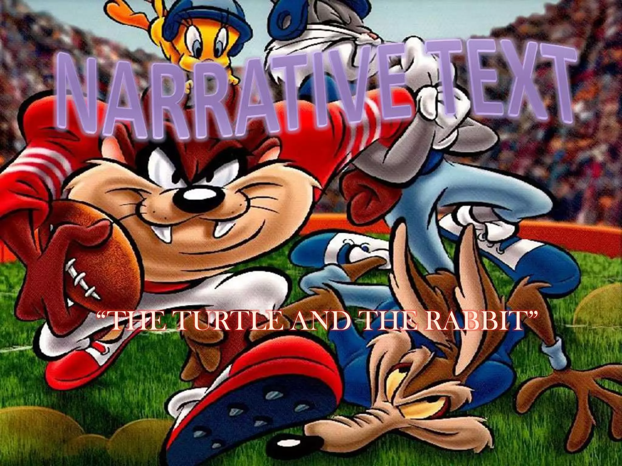 The rabbit challenged the turtle to a race and was confident he would win quickly due to his speed. On race day, the rabbit quickly got far ahead while the turtle slowly made progress. The rabbit stopped to rest under a tree before the finish line but fell asleep. By the time he woke up, the steady turtle was close to winning while the rabbit still had far to go, demonstrating that slow and steady wins the race.
