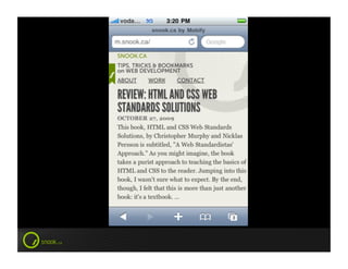 This document discusses different methods for embedding fonts on web pages, including their advantages and disadvantages. The font tag allowed using images of text for any font but had performance issues. CSS font stacks provide flexibility but not all fonts will be visible to users. JavaScript methods like SIFR and Cufón let any font be used but have limitations. The @font-face rule allows dynamic font usage with full CSS styling across browsers but requires font files in multiple formats and licensing can restrict embedding. Services exist to handle font hosting and formatting but have disadvantages around reliance on their servers. Subsetting and compression can improve performance but must be done carefully.