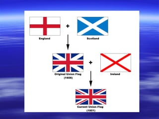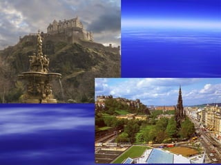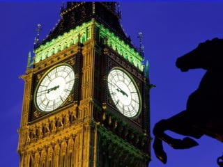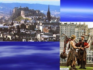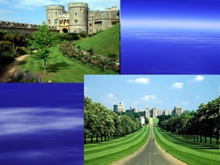 The document provides information about various landmarks and symbols of the United Kingdom and its constituent countries. It describes landmarks like Big Ben, Buckingham Palace, and Westminster Abbey in London, as well as Edinburgh Castle in Scotland. It notes the rose and thistle as symbols of England and Scotland, respectively, and discusses capital cities like London, Edinburgh, and Cardiff.