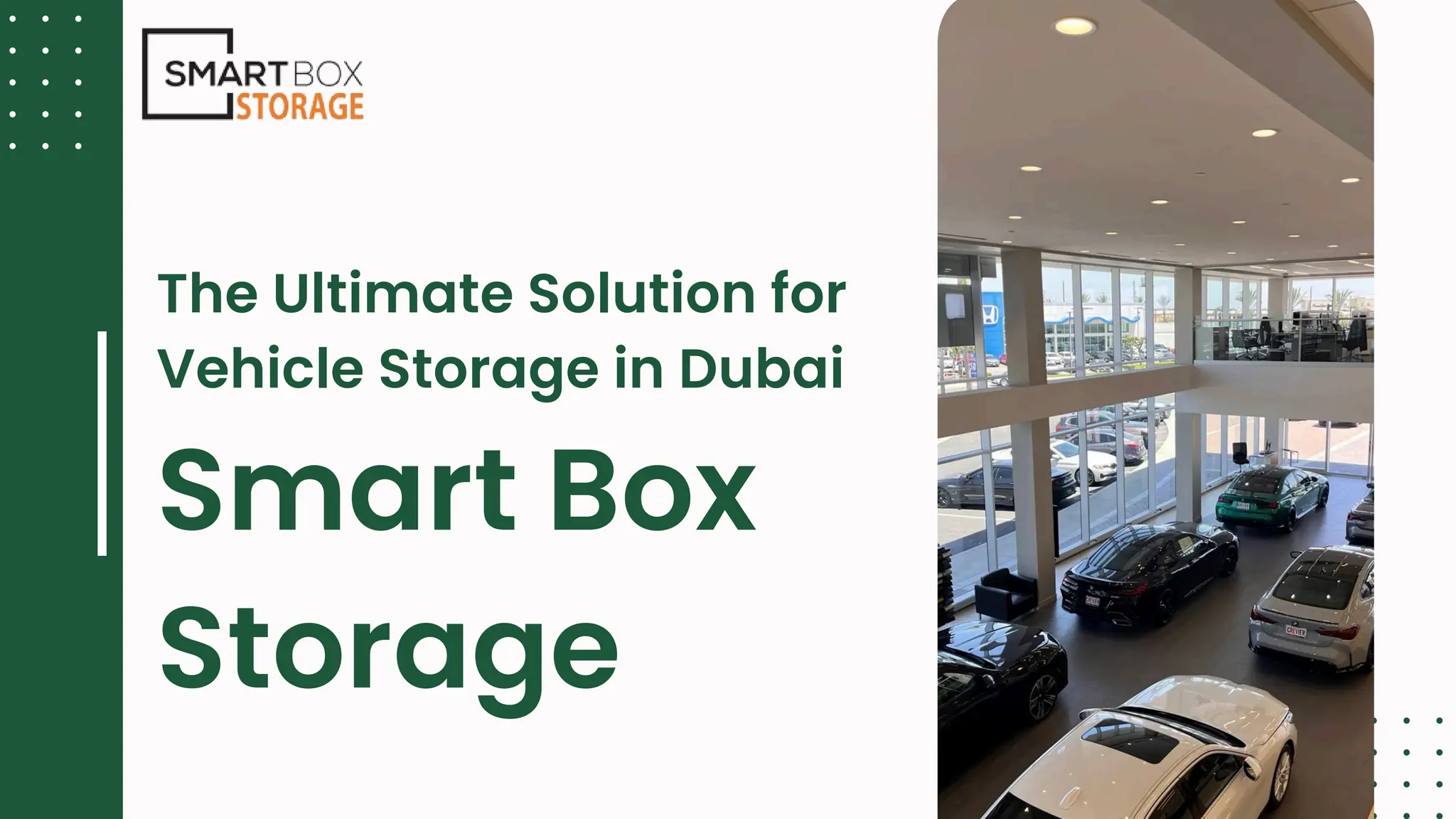Smart Box Storage offers the most reliable vehicle storage in Dubai, designed for classic cars, seasonal vehicles, boats, motorcycles, RVs, and business fleets. With 24/7 CCTV, biometric access, and climate-controlled facilities, your vehicles are fully protected from theft, rust, and harsh weather. Flexible short-term and long-term rental plans, easy drop-off and pickup options, and affordable pricing make it the trusted choice for individuals and businesses seeking secure and convenient storage solutions in Dubai.