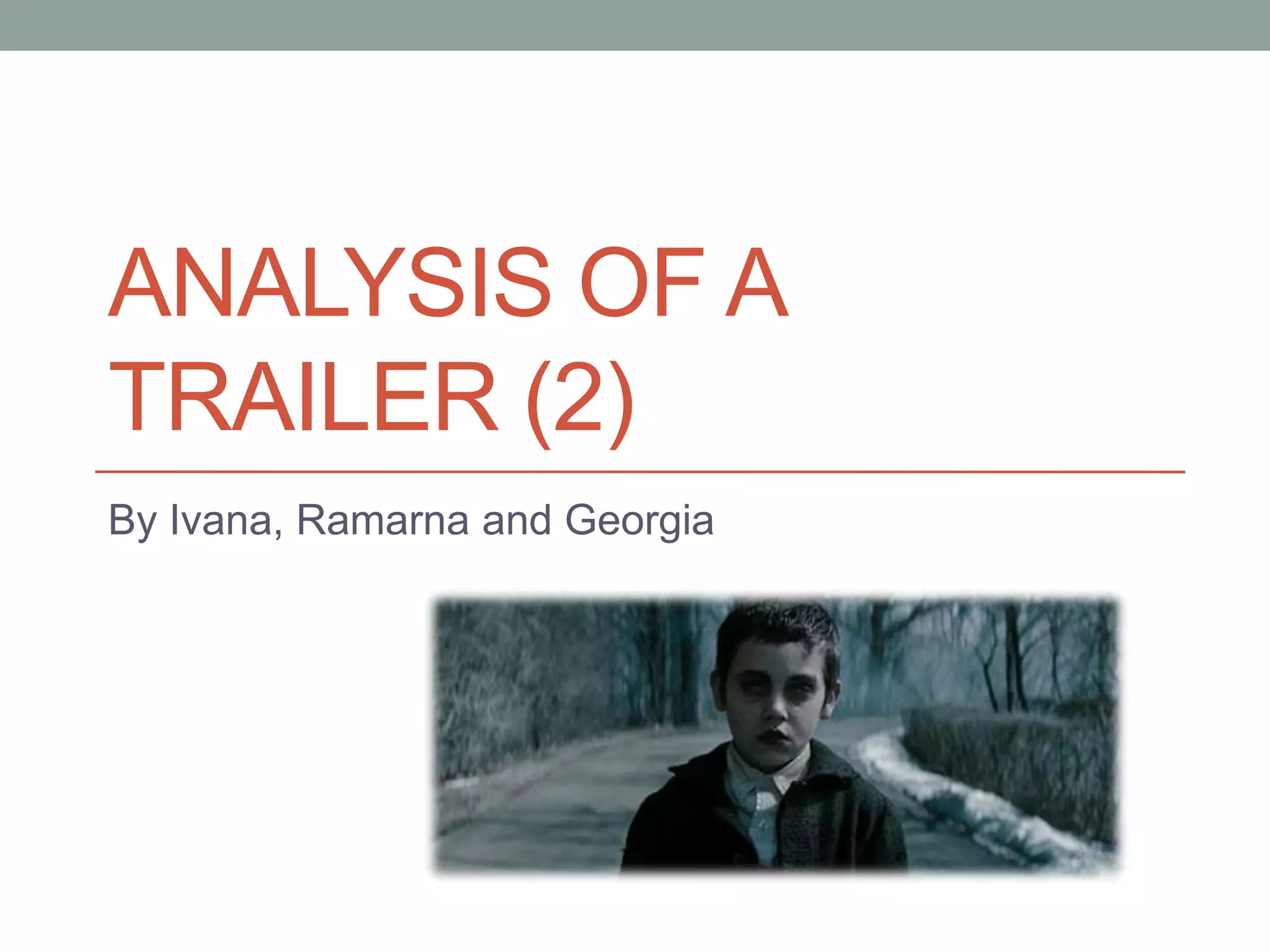 This document analyzes the trailer for the horror film "The Unborn" through its use of iconography and structure. It discusses the stereotypical horror elements used in the setting, props, and characters. These include an isolated house in the woods, baby monitors implying a possessed child, and religious exorcism equipment. The trailer also employs quick cuts and fades, unsettling sounds, and camera shots like close-ups and canted angles to build tension and an eerie atmosphere for viewers.