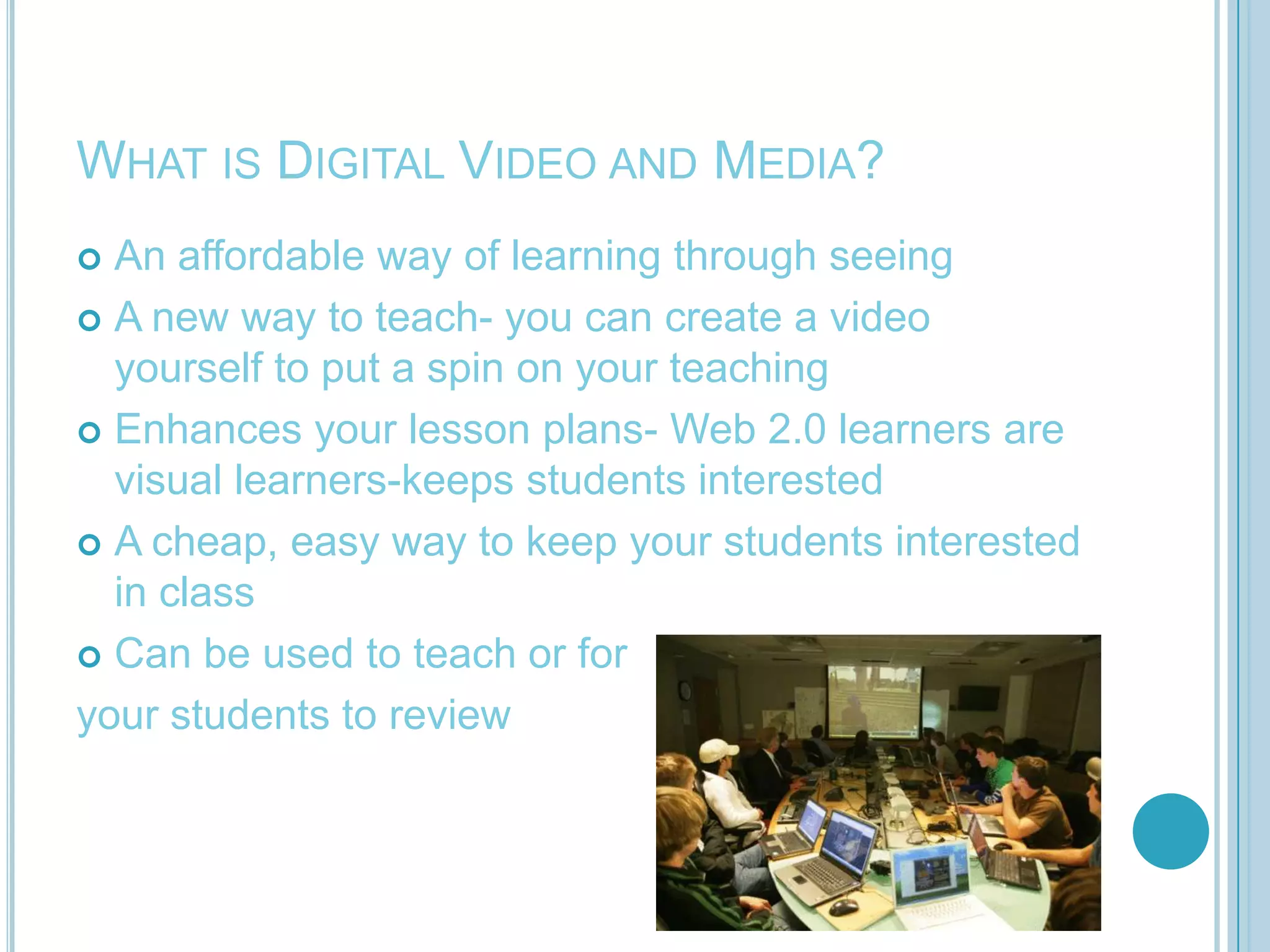 Digital video and media can enhance literacy learning by keeping students engaged as visual learners. Teachers have many free online resources to incorporate video into their lessons through sites like Discovery Education, Animoto, and Windows Movie Maker. Students can create their own video presentations and reviews of material. The document outlines a step-by-step process for teachers to have students make videos, including planning with a storyboard, filming, and editing with free programs like Movie Maker or iMovie.