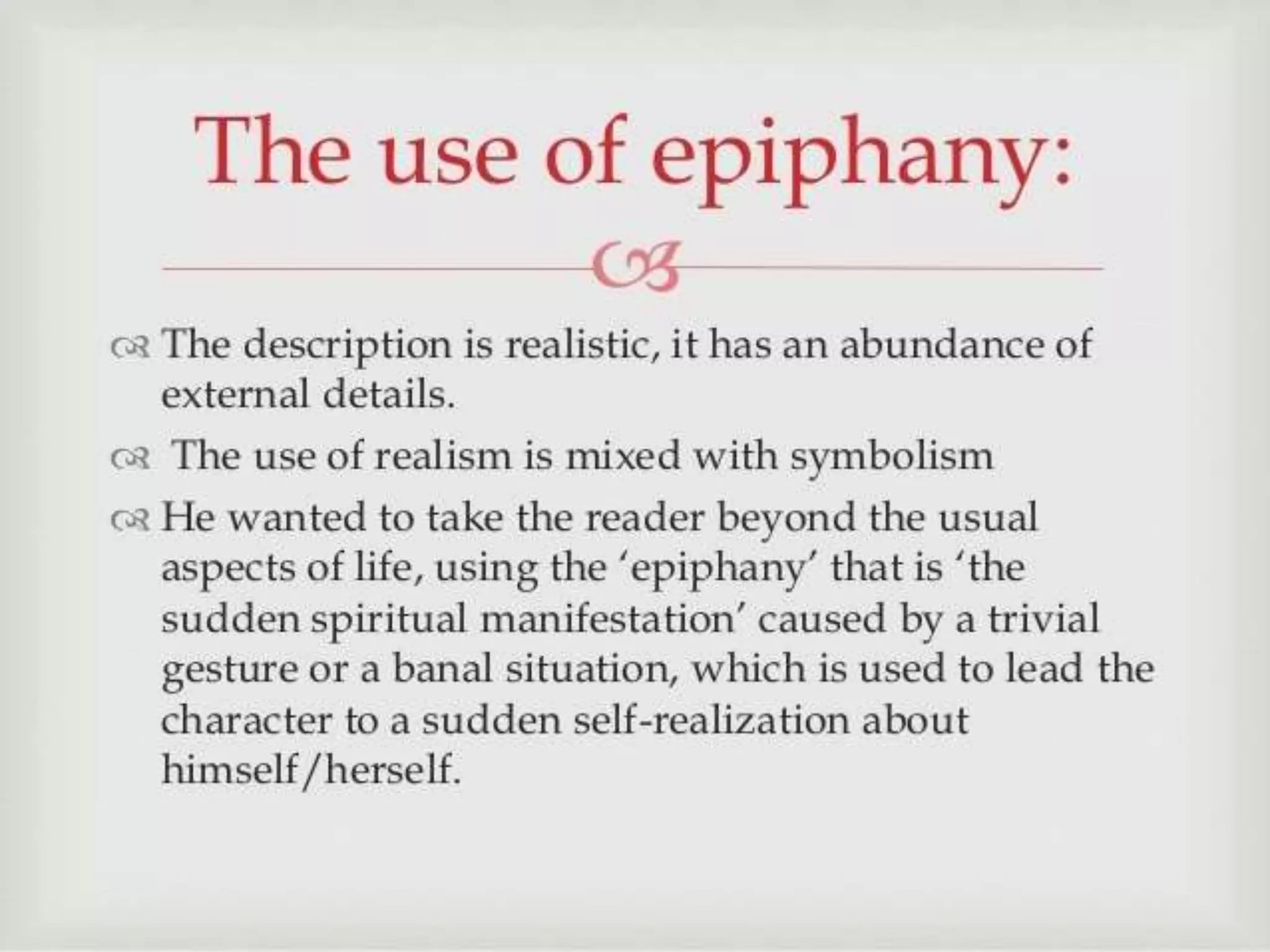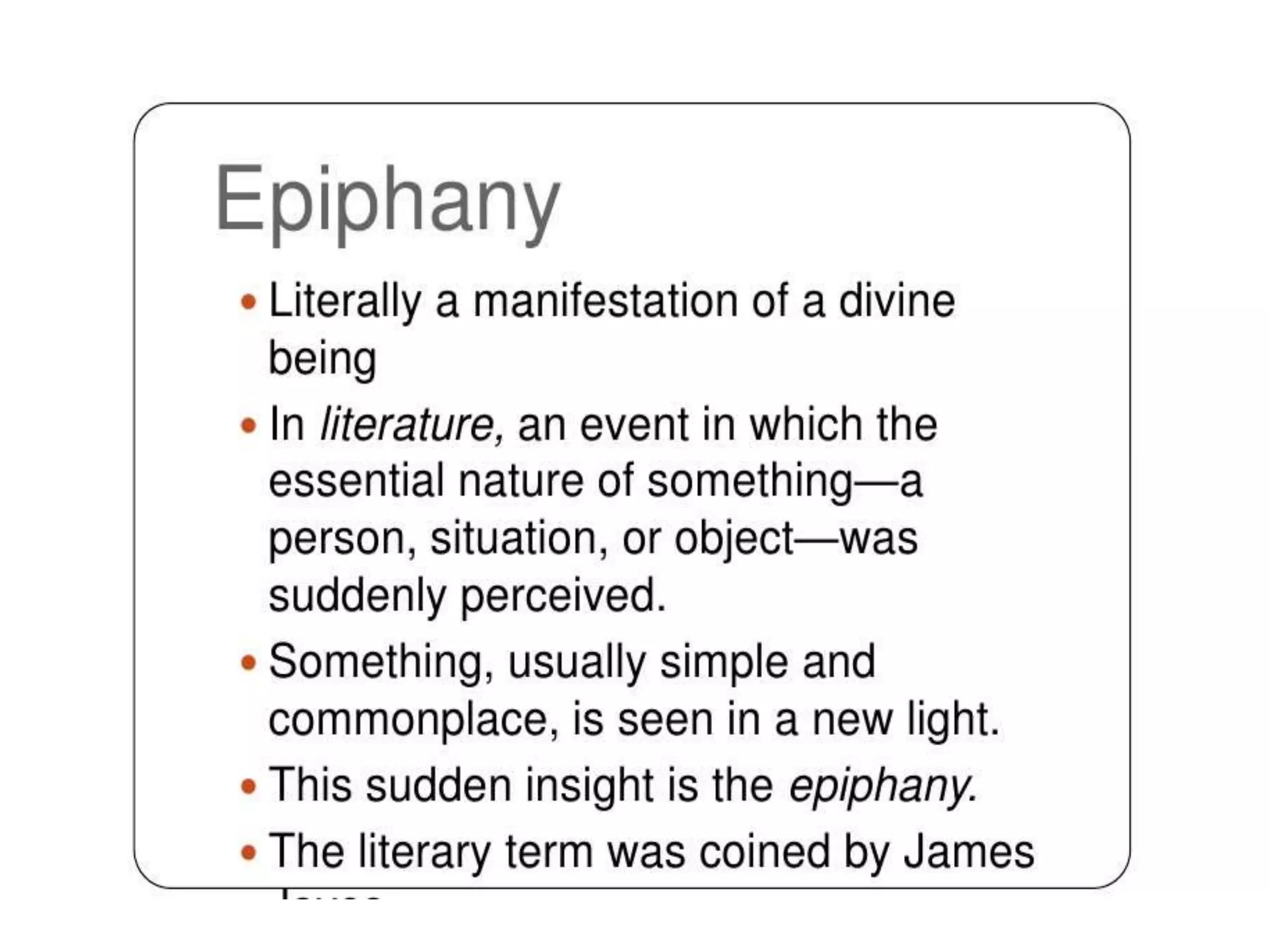 Exploration of the meaning and concept of epiphany, including a quote by Joyce.