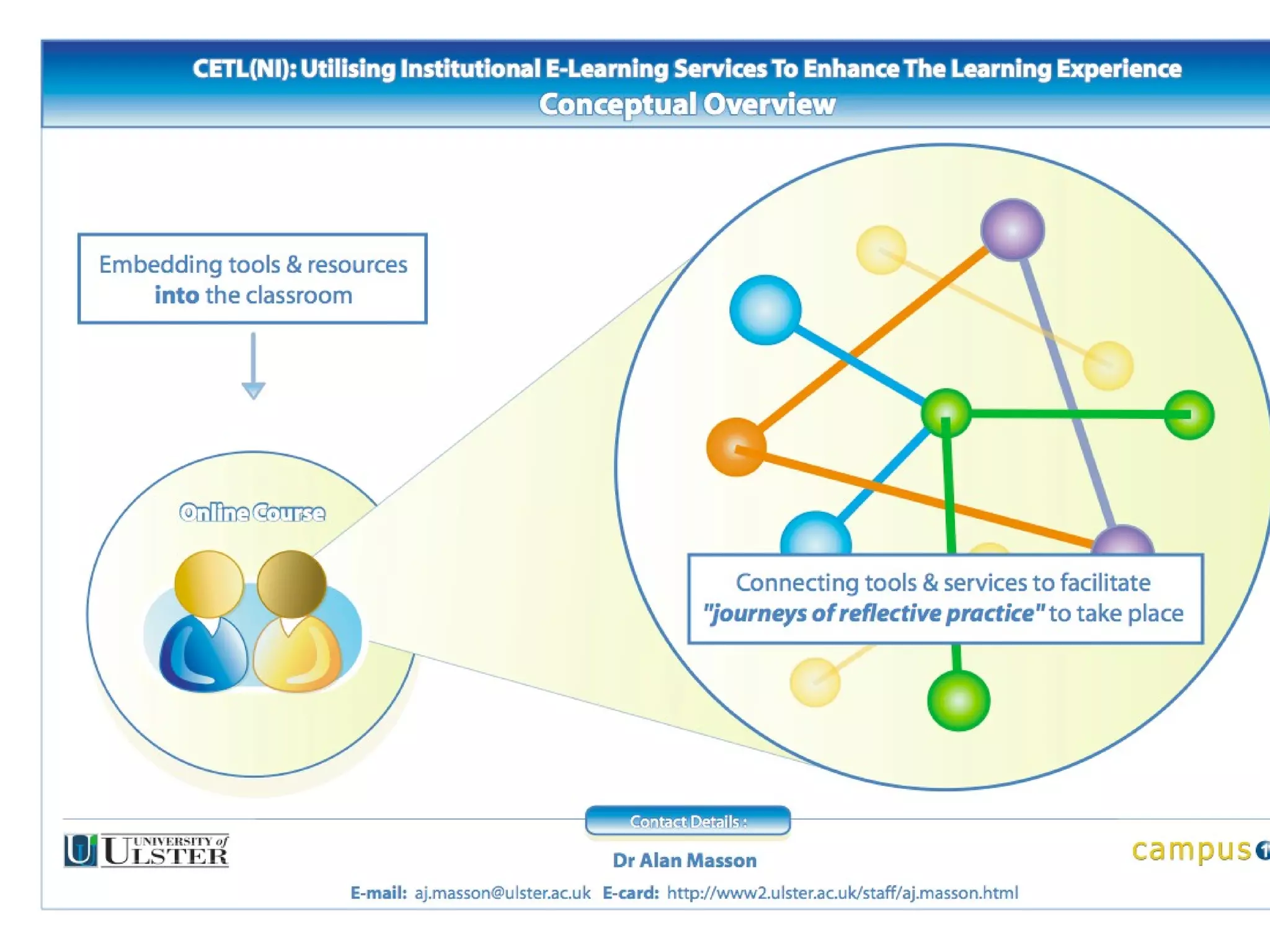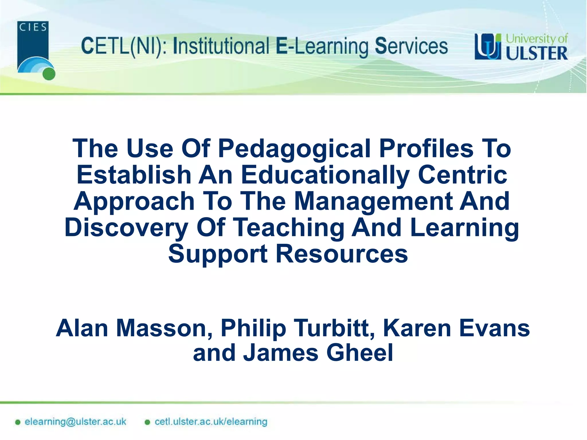 The document discusses using pedagogical profiles to connect teaching and learning resources and establish a learner-centered approach to managing these assets. It proposes applying educational metadata standards to siloed information systems to link related materials like case studies, training courses, and e-learning tools. This integrated approach aims to simplify access to relevant resources and encourage reuse. Initial progress includes adopting core applications and demonstrable connections between systems at some institutions.