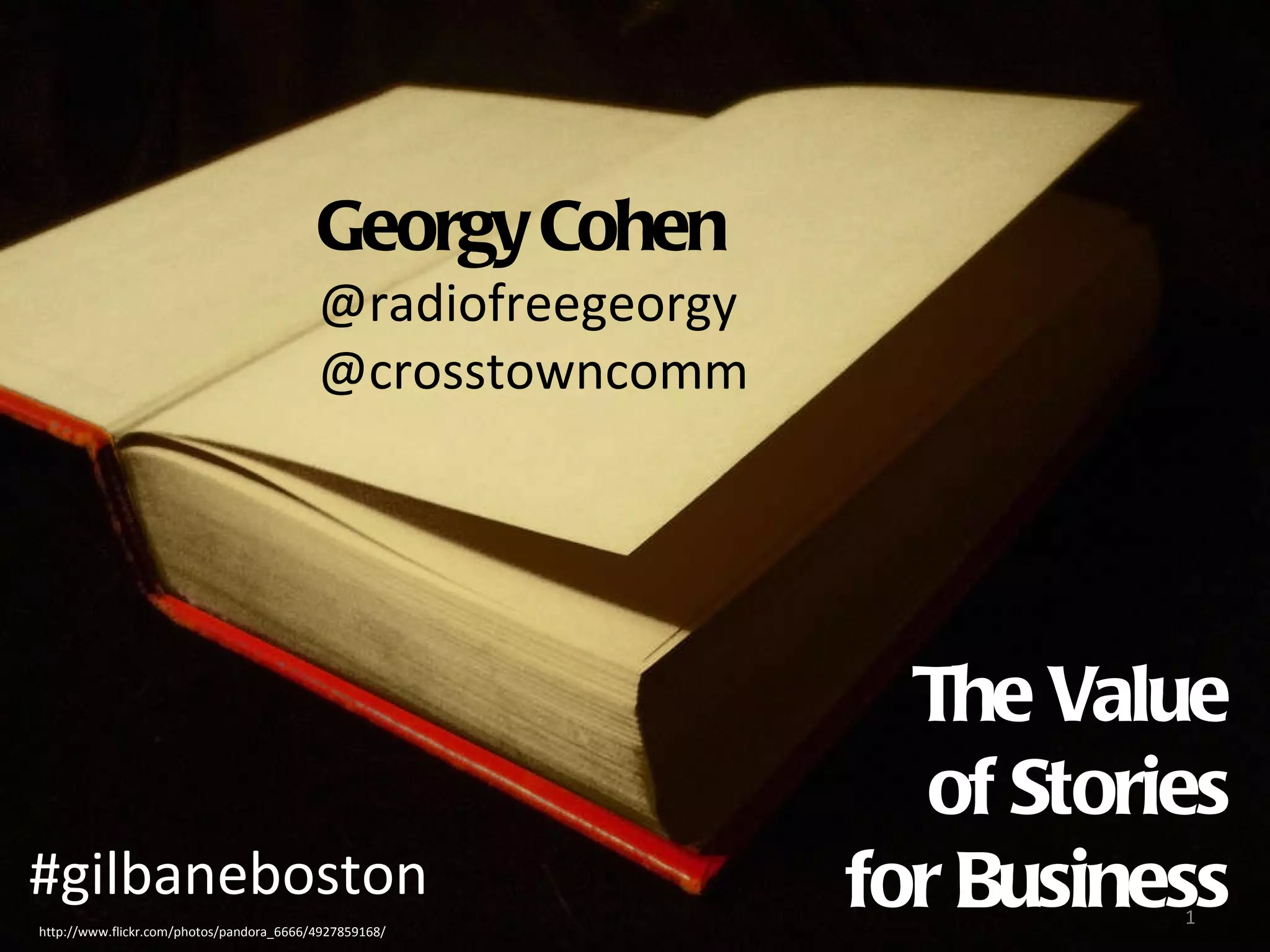 The document discusses the importance and power of storytelling, both for individuals and businesses. Stories help share values and knowledge within a community. They are universal and allow people to see themselves and understand why products exist. Effective stories follow an arc that moves a character or situation from one state to another in order to create change and distinguish products in crowded markets.