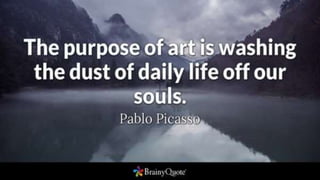 This document discusses the values of art and how to determine if an artwork is great. It identifies eight qualities that distinguish great works of art: 1) aesthetic value, 2) intellectual value, 3) suggestiveness, 4) spiritual value, 5) permanence, 6) universality, 7) style, and 8) form. Examples are given for each value, such as Juan Luna's Spoliarium for suggestiveness. The document encourages analyzing pictures based on these values and reflecting on how art can be valuable in one's own life.
