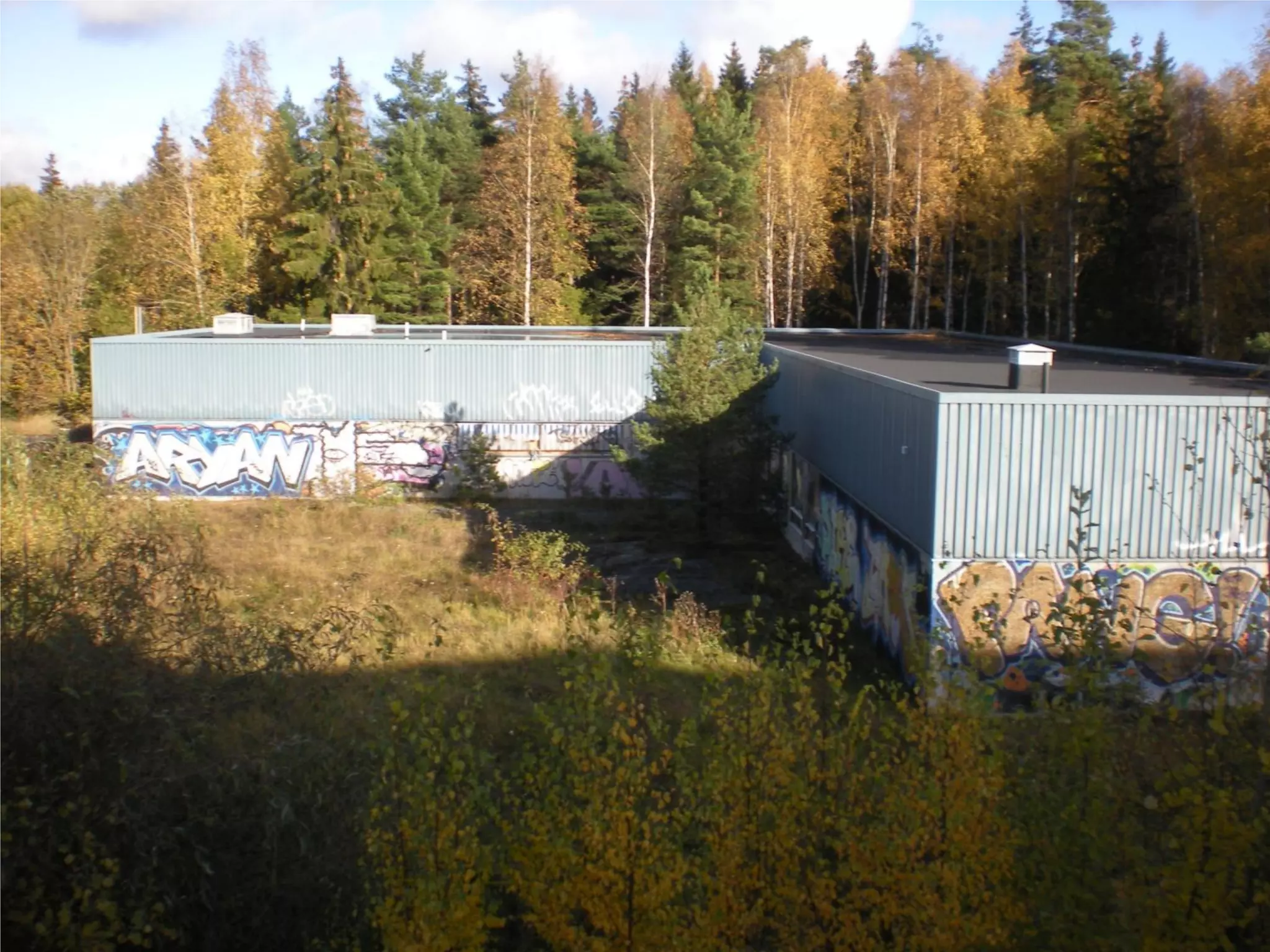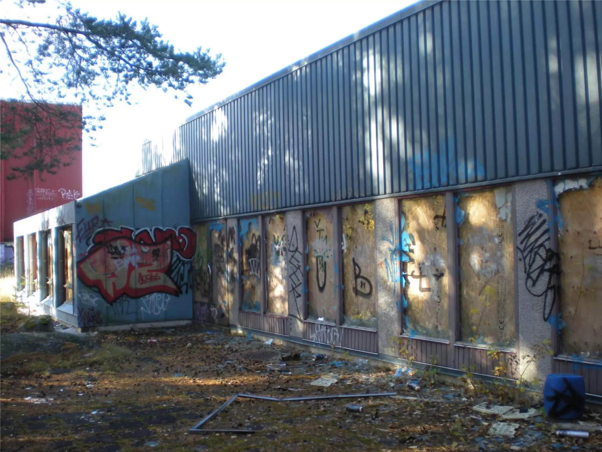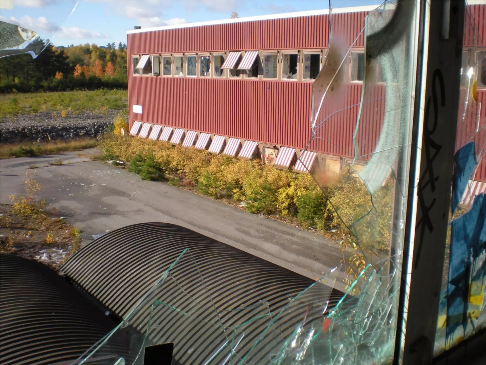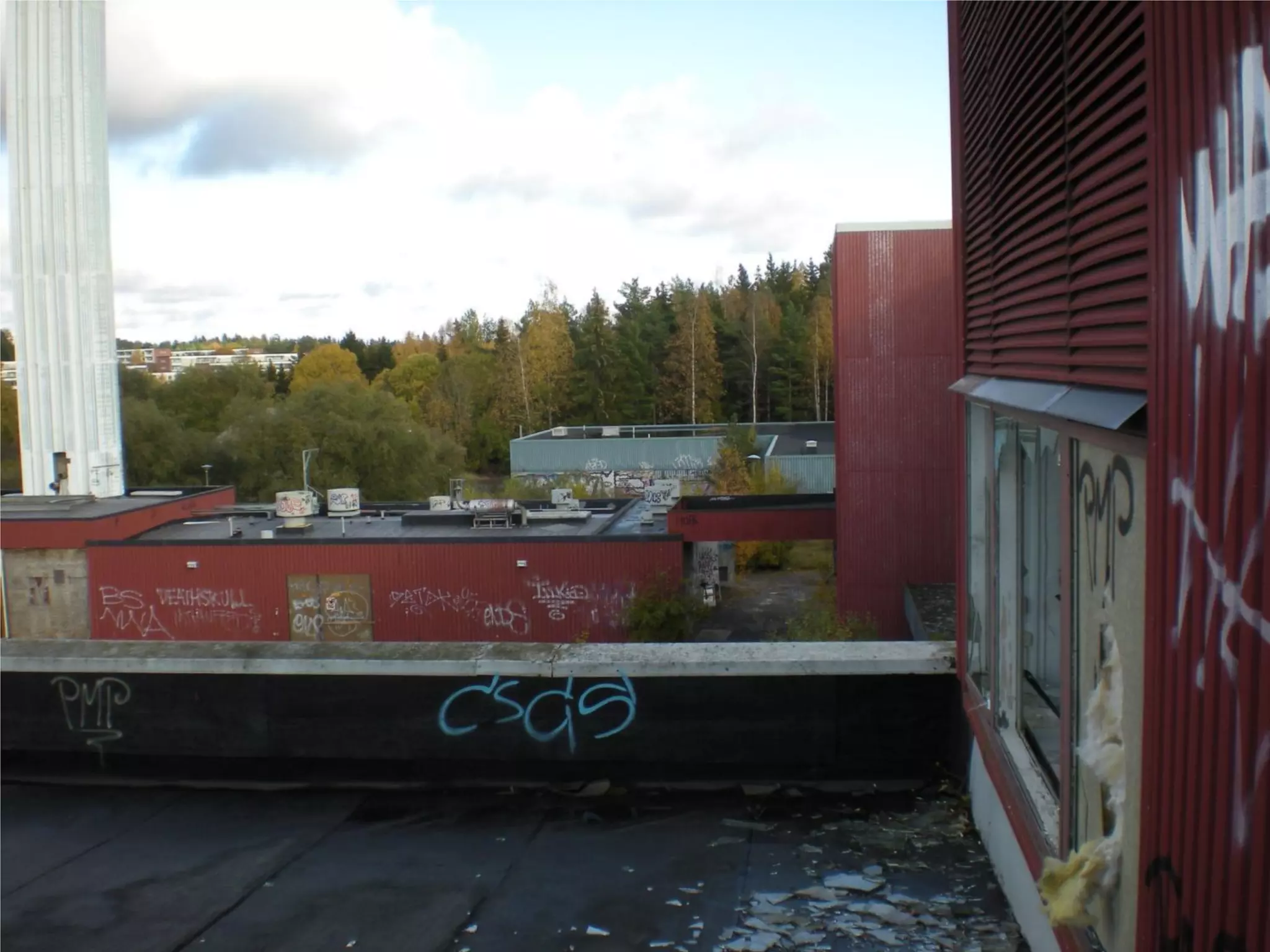 Kodak used to have a site outside Stockholm, Sweden that has since been vandalized and left in disrepair. The abandoned main building and surrounding area show signs of broken windows and graffiti, documenting the demise of the once prominent company. An artist added graffiti summarizing Kodak's fate on a small building next to the main site.