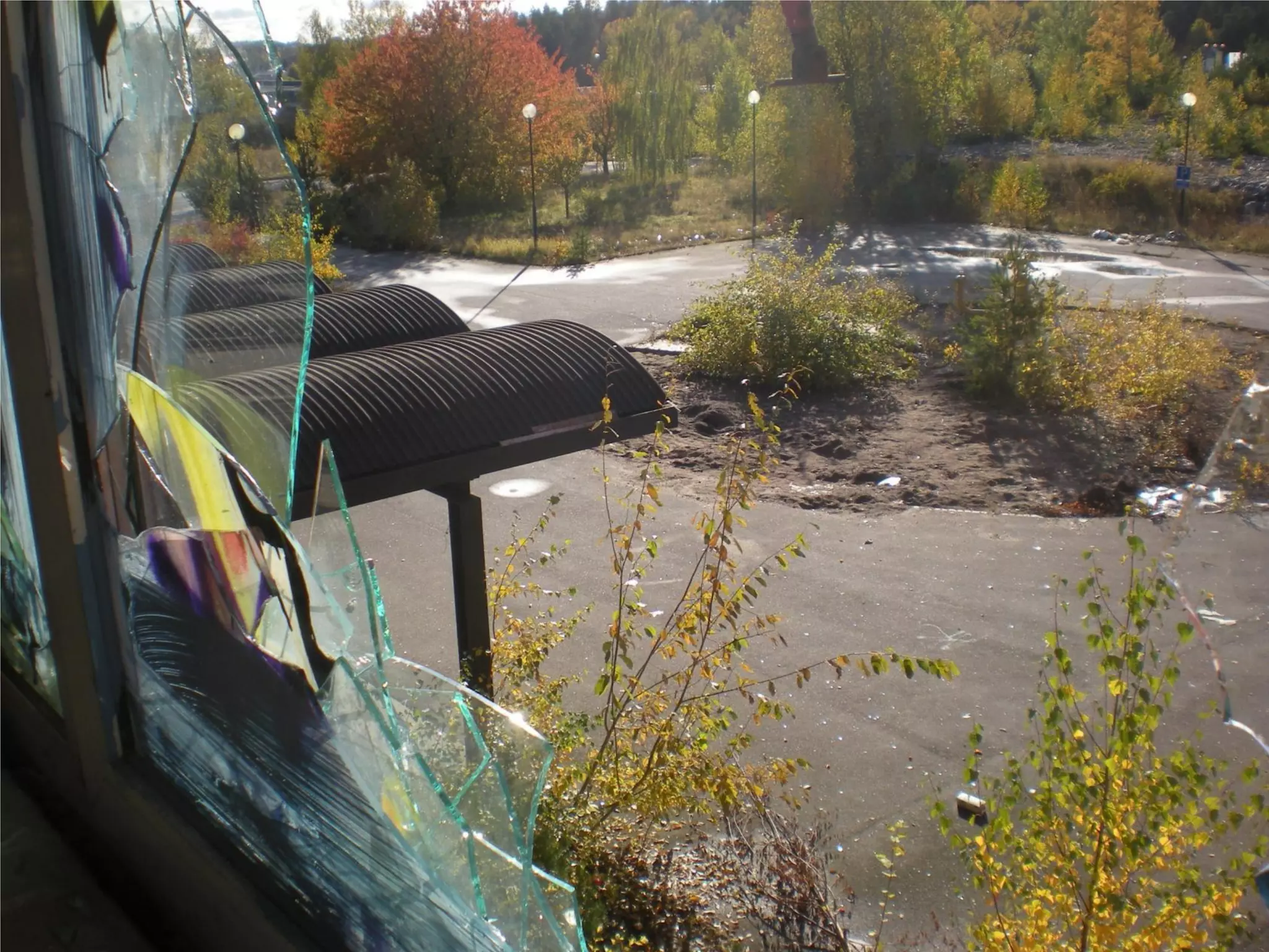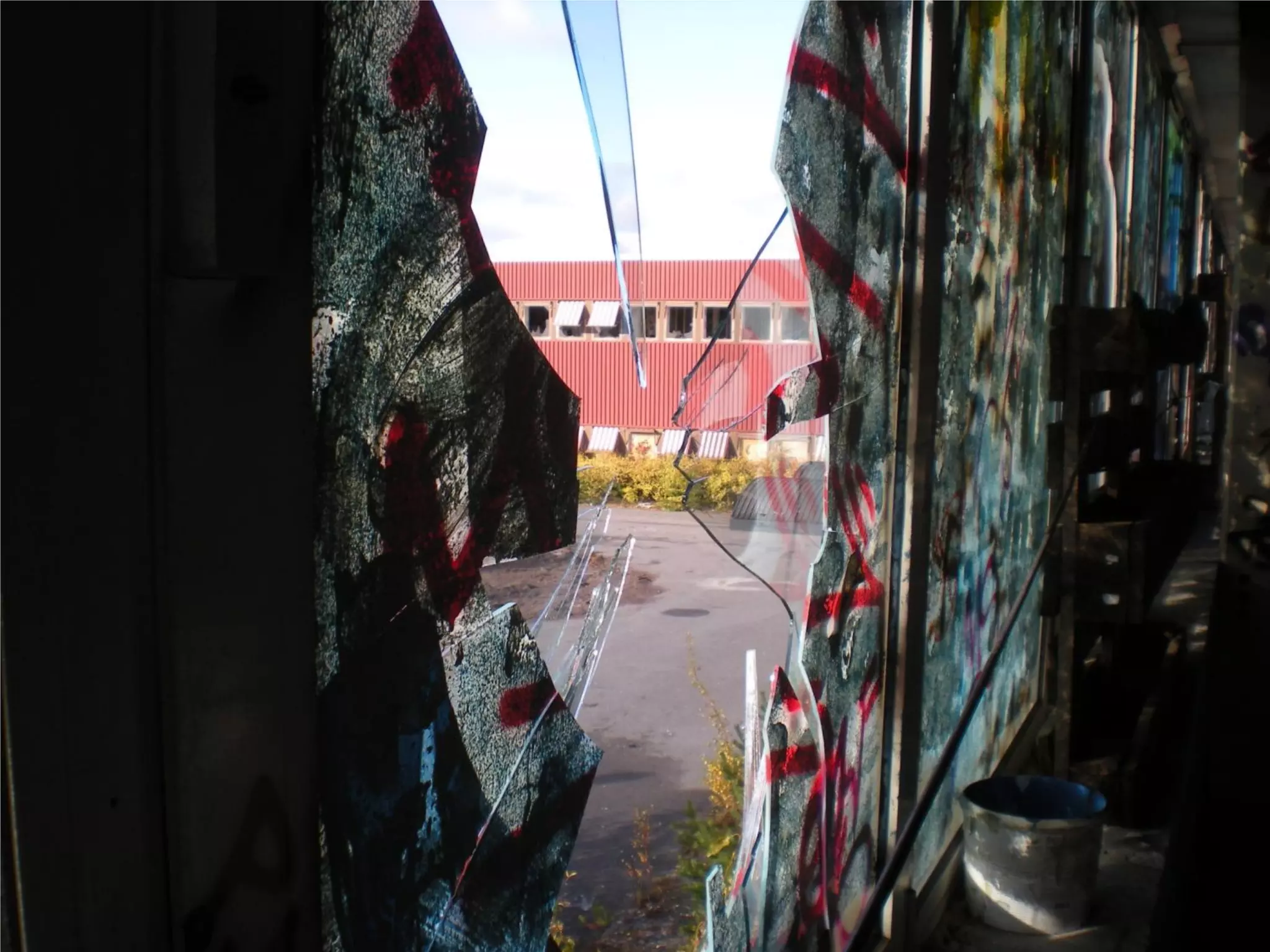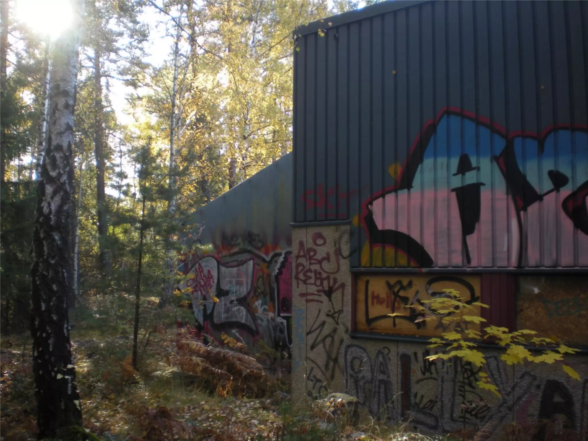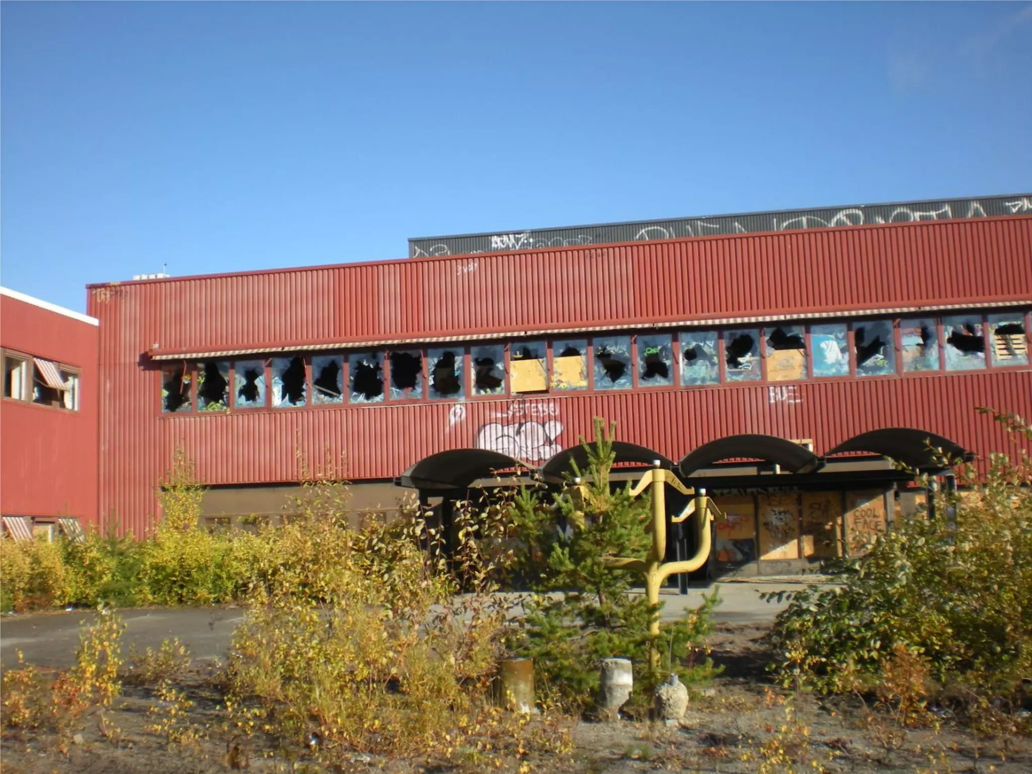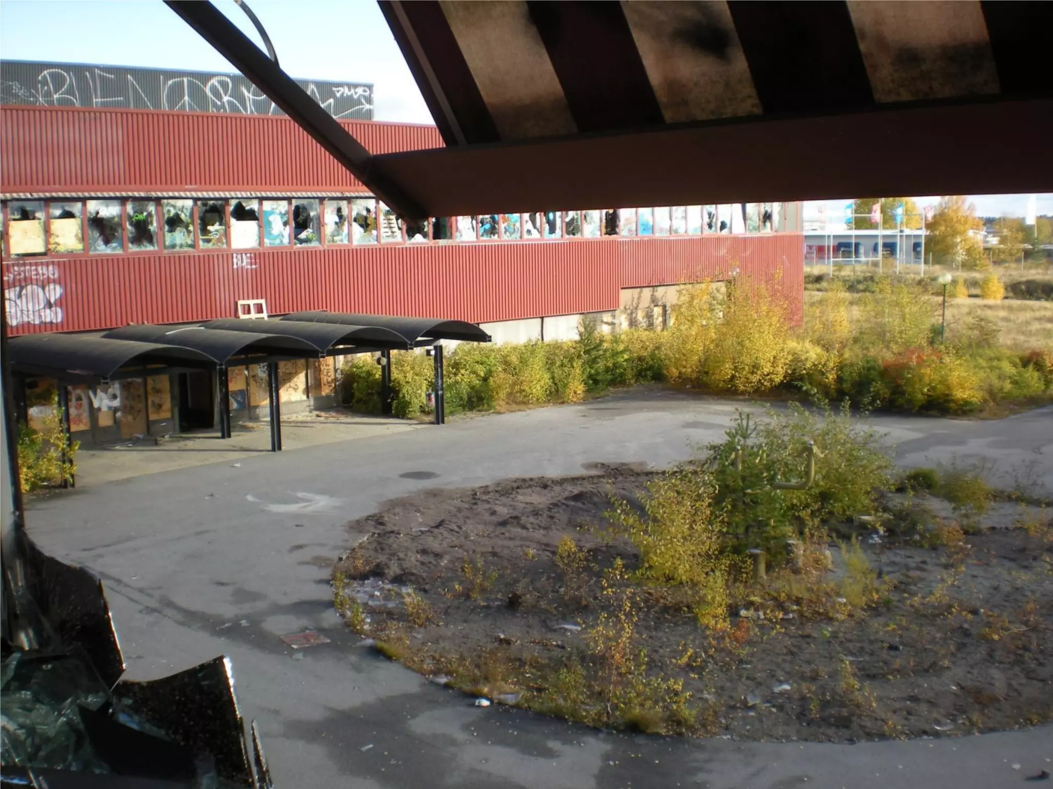 Kodak used to have a site outside Stockholm, Sweden that has since been vandalized and left in disrepair. The abandoned main building and surrounding area show signs of broken windows and graffiti, documenting the demise of the once prominent company. An artist added graffiti summarizing Kodak's fate on a small building next to the main site.