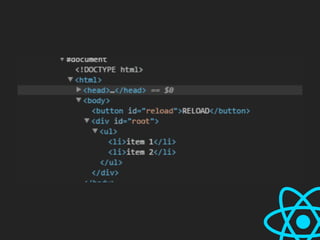 The document explains the workflow of rendering a web page and the role of the virtual DOM (vDOM) in React. It details how changes in the virtual tree are handled efficiently by comparing old and new trees to minimize the costly reflow and repaint processes. The vDOM facilitates performance improvements for complex applications by allowing only necessary changes to be made in the real DOM.