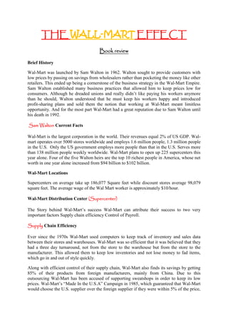 This document provides a summary of the book "The Wal-Mart Effect" including: