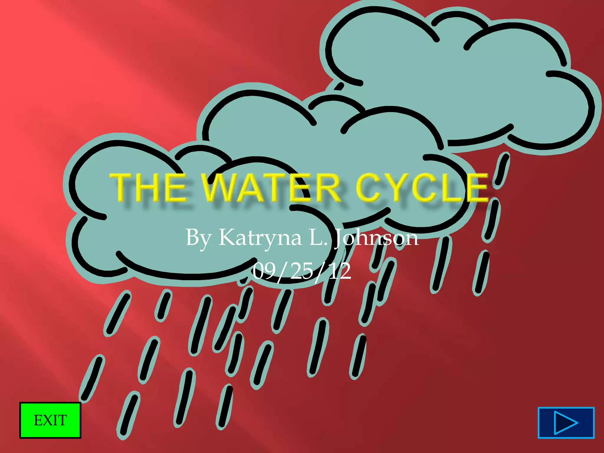 The document discusses the water cycle through defining key terms like evaporation, condensation, precipitation, and transpiration. Evaporation turns water into vapor, condensation forms water drops from vapor as it cools, precipitation deposits water from clouds, and transpiration moves water through plants and evaporates it from their leaves. These processes interact in a cycle that continuously circulates water around Earth.