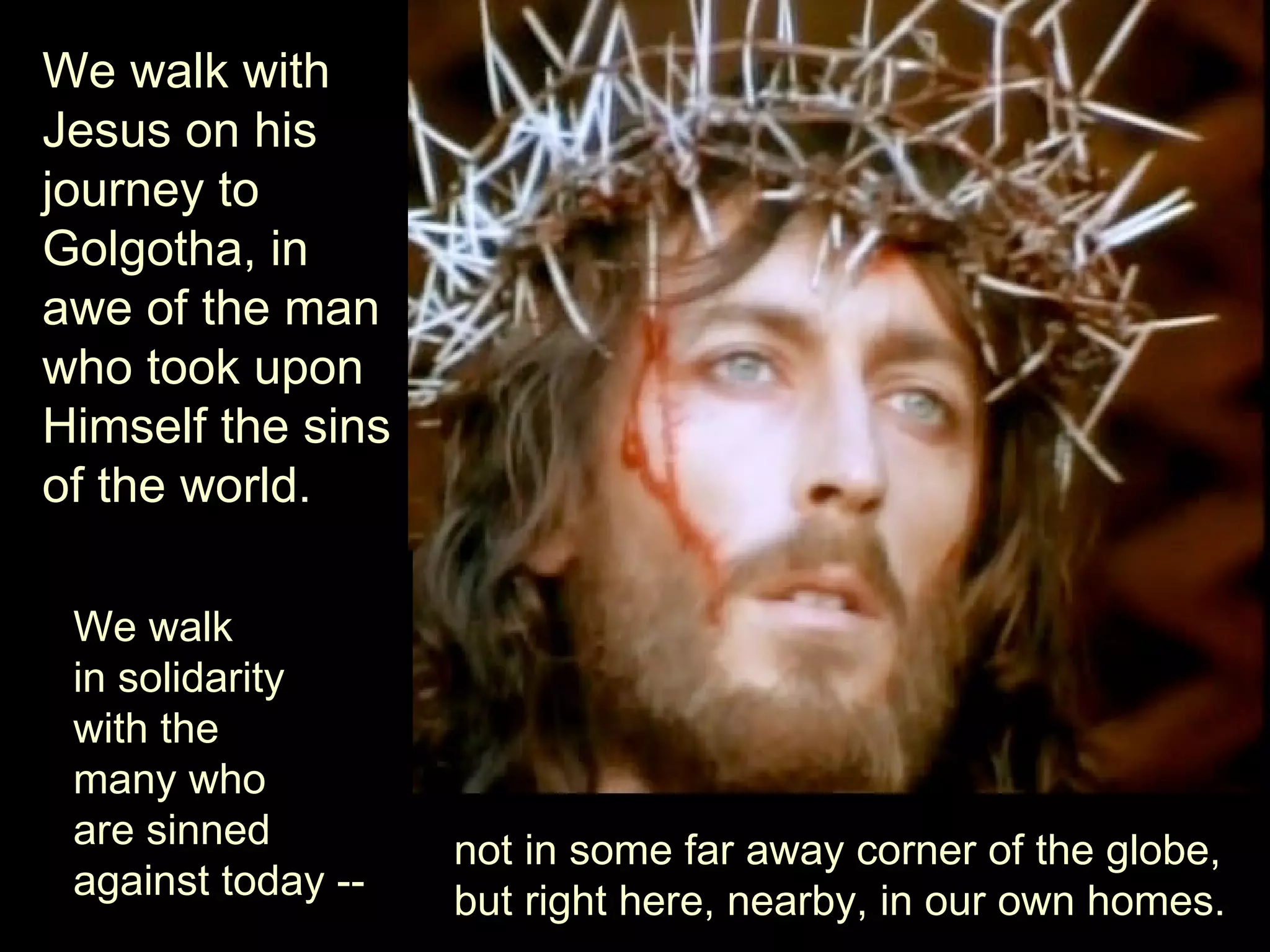 The document is a reflection on the 14 Stations of the Cross. It summarizes each station, drawing parallels between Jesus' suffering and challenges faced in today's world. Some of the hardships highlighted include injustice, oppression, poverty, discrimination, failure, gossip, and death. The reflection encourages readers to empathize with those who suffer and work to alleviate pain in the world, following Jesus' example of sacrifice and love.