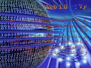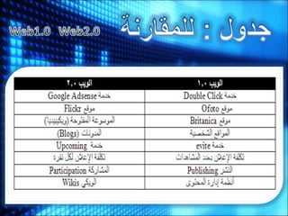 تناقش الوثيقة تطور الويب من Web 1.0 إلى Web 3.0، موضحةً أهمية المعلومات وسهولة الوصول إليها عبر الإنترنت. تبرز المميزات التي وفرتها التقنيات الحديثة مثل AJAX وJavaScript وRSS في تحسين تجربة المستخدم وتخصيص المحتوى. تتناول أيضًا الثورة القادمة في الويب الدلالي (Semantic Web) ودوره في توجيه المعلومات بشكل أكثر فعالية.