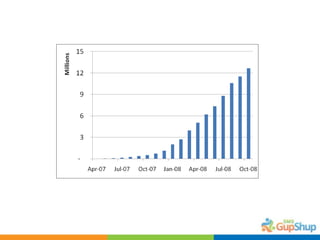 The document discusses the growth of communication technologies beyond the traditional web, including voice/SMS with over 3.5 billion subscribers compared to 1.4 billion HTTP users. It notes converging applications and the opportunity for entrepreneurs in this new web driven by mobile messaging, microblogging, and voice/SMS networks in India and other countries. This represents another web beyond the traditional web with similarities to it but communicated through shorter messages.
