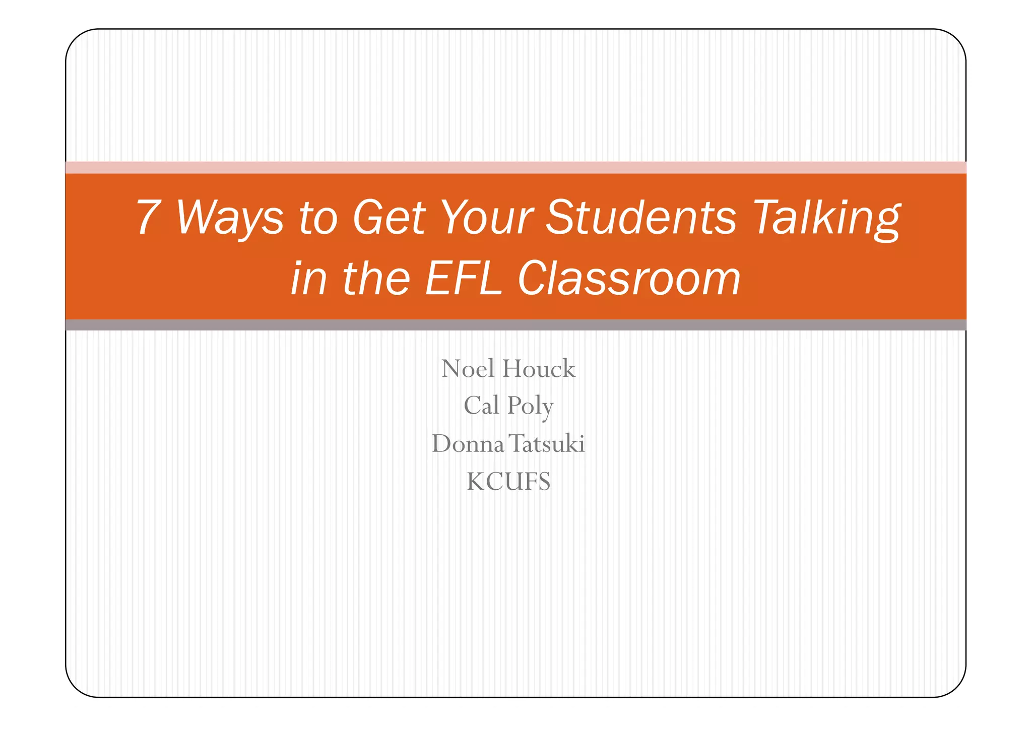 This document provides 7 techniques for getting English language learners to speak in the classroom. It begins by outlining the 7 techniques: 1) repetition of phrases, 2) memorization of language chunks, 3) short meaningful responses, 4) interaction with classmates, 5) focus on accurate language production, 6) focus on fluent language production, and 7) interaction with native or fluent speakers. Each technique is then explained in more detail with examples of classroom activities. References are also provided for further reading on techniques to promote oral production.