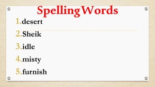 The story is set in the desert of Arabia, where Ali Ben's tribe is preparing for a visit from the Sheik Ben Nedi. Zuleika is sad because her baby camel died and she has nothing to offer the visitor. A fairy appears to Zuleika by the well and gives her a tree that grows from where her tears fell. When the Sheik arrives, he says Zuleika's gift of the tree is the best because it will provide food, fiber, and shade for the people.