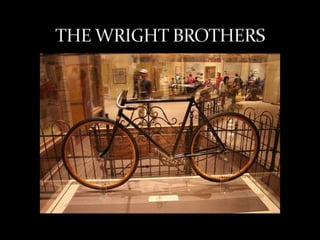 The Wright brothers, Wilbur and Orville, were two of seven children born in the late 1860s and early 1870s. They were independent thinkers and experimenters who taught themselves about aeronautics and aviation through building kites and bicycles. In 1903, the brothers achieved the first controlled, powered and sustained heavier-than-air human flight, flying 120 feet in 12 seconds near Kitty Hawk, North Carolina. Over subsequent years, they continued developing their aircraft and techniques, conducting the world's first public demonstrations of flying machines and establishing the Wright Company.