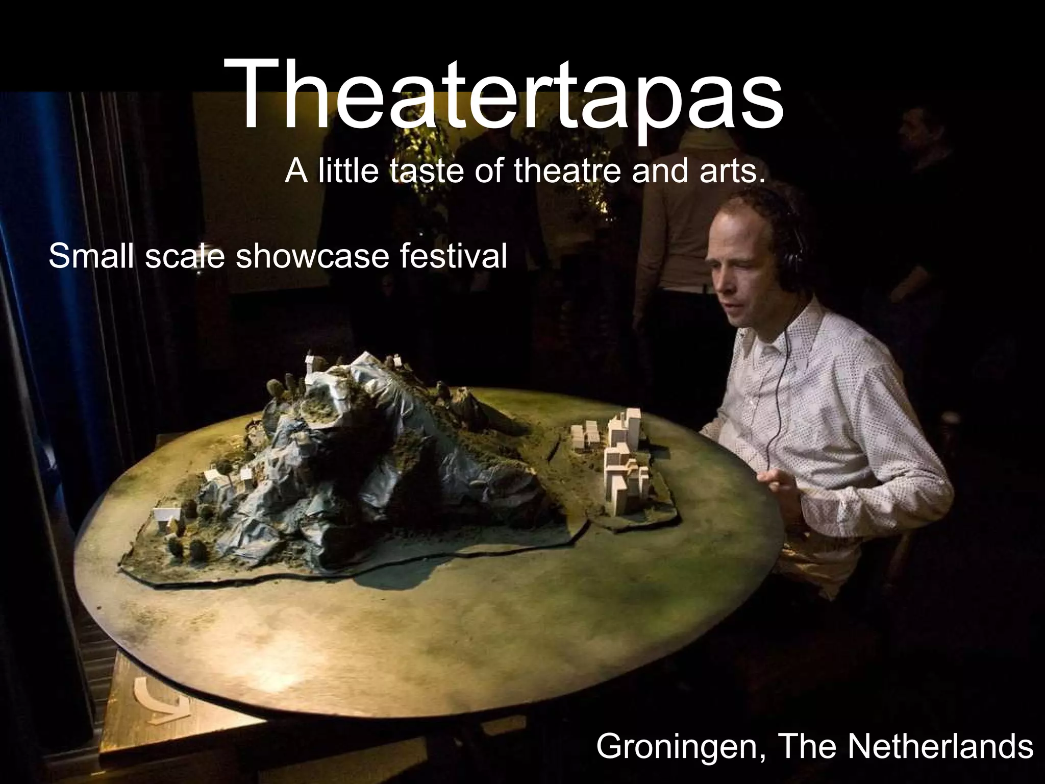 Theatertapas is a small-scale showcase festival in Groningen, Netherlands that provides a cultural menu of brief performances and art installations to help wake audiences up from winter and promote local artists. Participants can receive a menu to choose from various theater and arts "tapas," visit locations around the city, and then meet makers over live music and real tapas served by a local restaurant. The event is an initiative that helps artists express and promote themselves collaboratively as they professionalize their creative businesses.