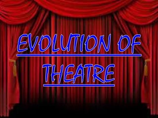 This document outlines the history and evolution of theatre. It begins by defining theatre as a live performance before an audience. It then discusses Broadway theatre and its golden age beginning in 1943 with the blockbuster hit Oklahoma. The Tony Awards were established in 1947 to recognize achievements in American theatre. The document also discusses forms of modern theatre like tragedy, comedy, melodrama, and musicals. It explores the Theatre of the Absurd philosophy influenced by Albert Camus and playwrights like Samuel Beckett. Finally, it provides information on the Philippine Educational Theatre Association and some of their recent plays focusing on Philippine history and literature.