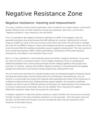 The document discusses negative resistance observed in certain semiconductor devices, particularly focusing on tunnel and Gunn diodes. It explains how these devices can exhibit negative resistance by demonstrating an inverse relationship between voltage and current, allowing them to amplify power under specific conditions. Additionally, the document covers related concepts such as peak inverse voltage (PIV) and the characteristics of fast recovery and avalanche diodes.