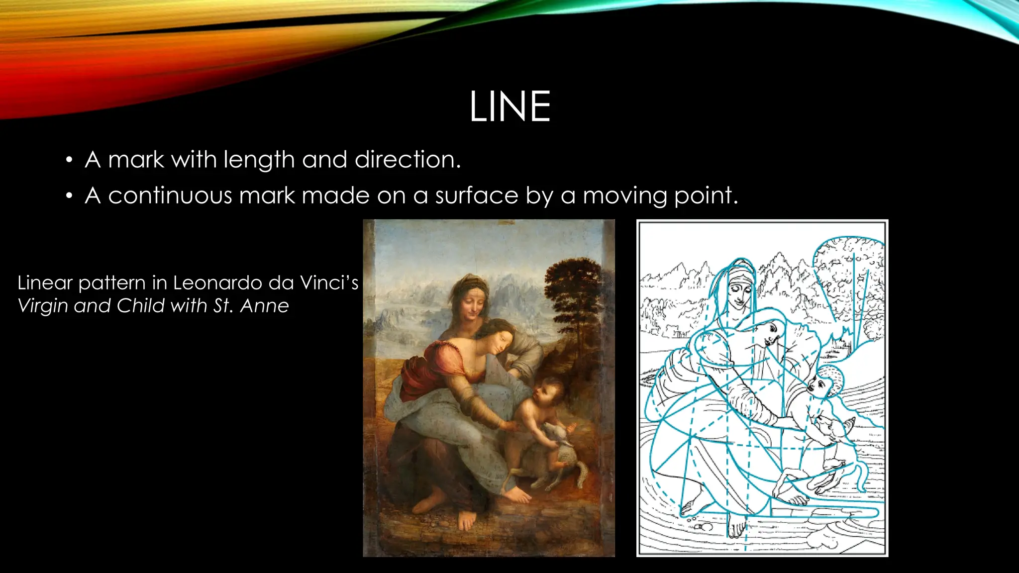 The elements of art include line, color, shape, form, space, texture, and principles of organizing them such as balance, emphasis, variety, unity, proportion, rhythm, and contrast. Lines can be horizontal, vertical, zigzag or curves. Color has hue, saturation and value, and warm and cool colors. Shape is enclosed areas and form is 3D. Space includes positive and negative areas. Texture describes surfaces. Principles like balance create stability, emphasis draws attention, and contrast creates interest.