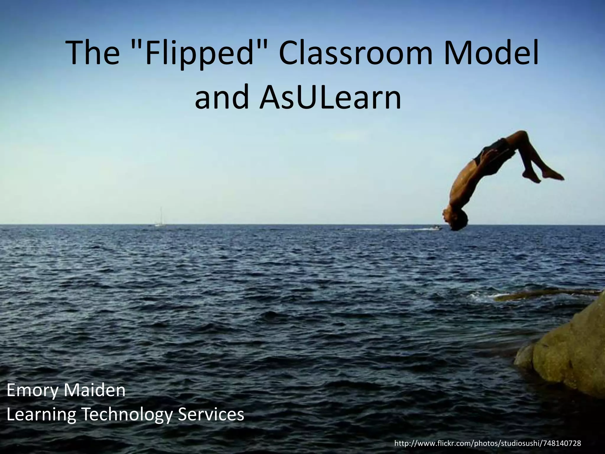 This document discusses the "flipped classroom" model and its potential use with the learning management system AsULearn. It begins by asking what the best use of face-to-face classroom time is and lists options like lecture, group work, discussions, and student questions. It then identifies three key elements of the flipped classroom model: high-quality online instructional resources, engaging in-class activities, and assessment. The document asks how the model could help courses and students. It poses questions about what instruction could be moved online, how students will be assessed, and what face-to-face time might look like. Finally, it outlines the goals and agenda for a workshop on implementing the flipped classroom model.