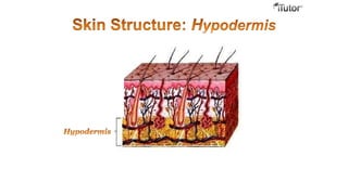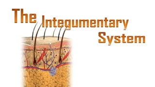 The integument, or skin, is the body's largest organ, constituting 16% of body weight and serving multiple vital functions including protection, sensation, and temperature regulation. It consists of two main parts: the cutaneous membrane, which includes the epidermis and dermis, and accessory structures such as hair and nails. Understanding the skin's structure and its layers, along with its role in health, is essential for comprehending its complex nature.