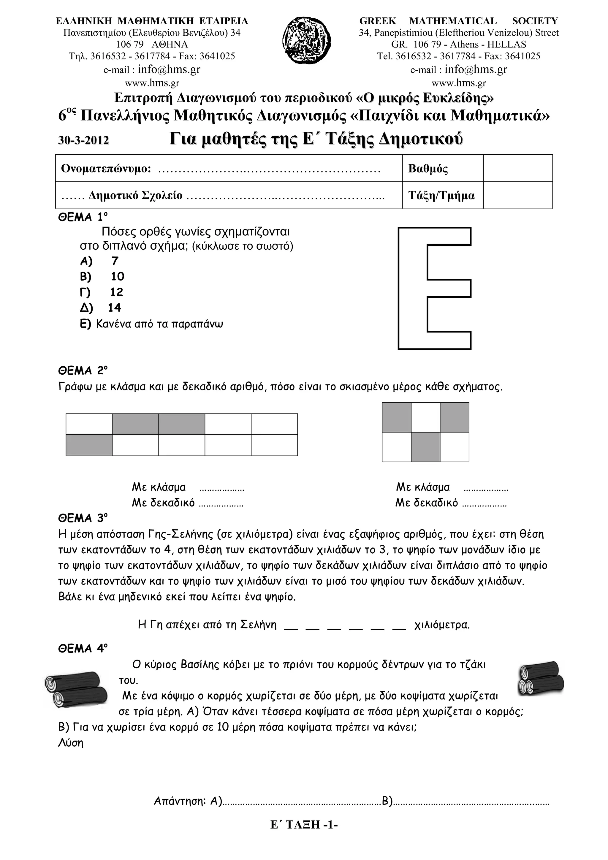 3300--33--22001122 ΓΓιιαα μμααθθηηττέέςς ττηηςς ΕΕ΄΄ ΤΤάάξξηηςς ΔΔηημμοοττιικκοούύ