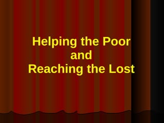 The document discusses perspectives on helping the poor from religious texts and figures. It provides numerous biblical passages about showing mercy and generosity to the poor, needy, widows, and orphans. It also discusses how the early church supported believers in need and cared for the poor. However, it cautions that assistance should not enable laziness and that the able-bodied poor should work to meet their own needs when possible.