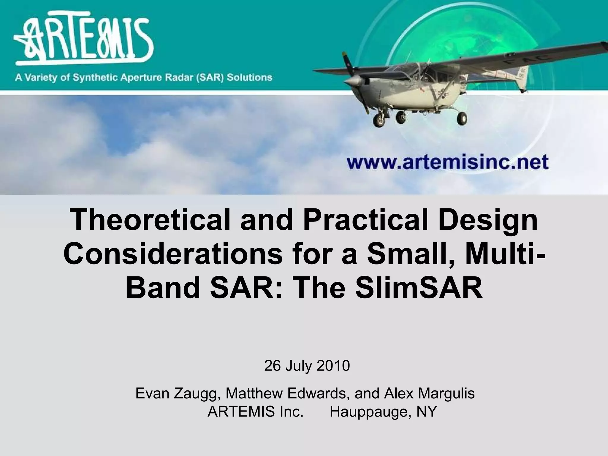 1) SlimSAR is a multi-frequency SAR that operates at L-band, X-band, and UHF with a bandwidth up to 660 MHz and weighs less than 10 lbs.